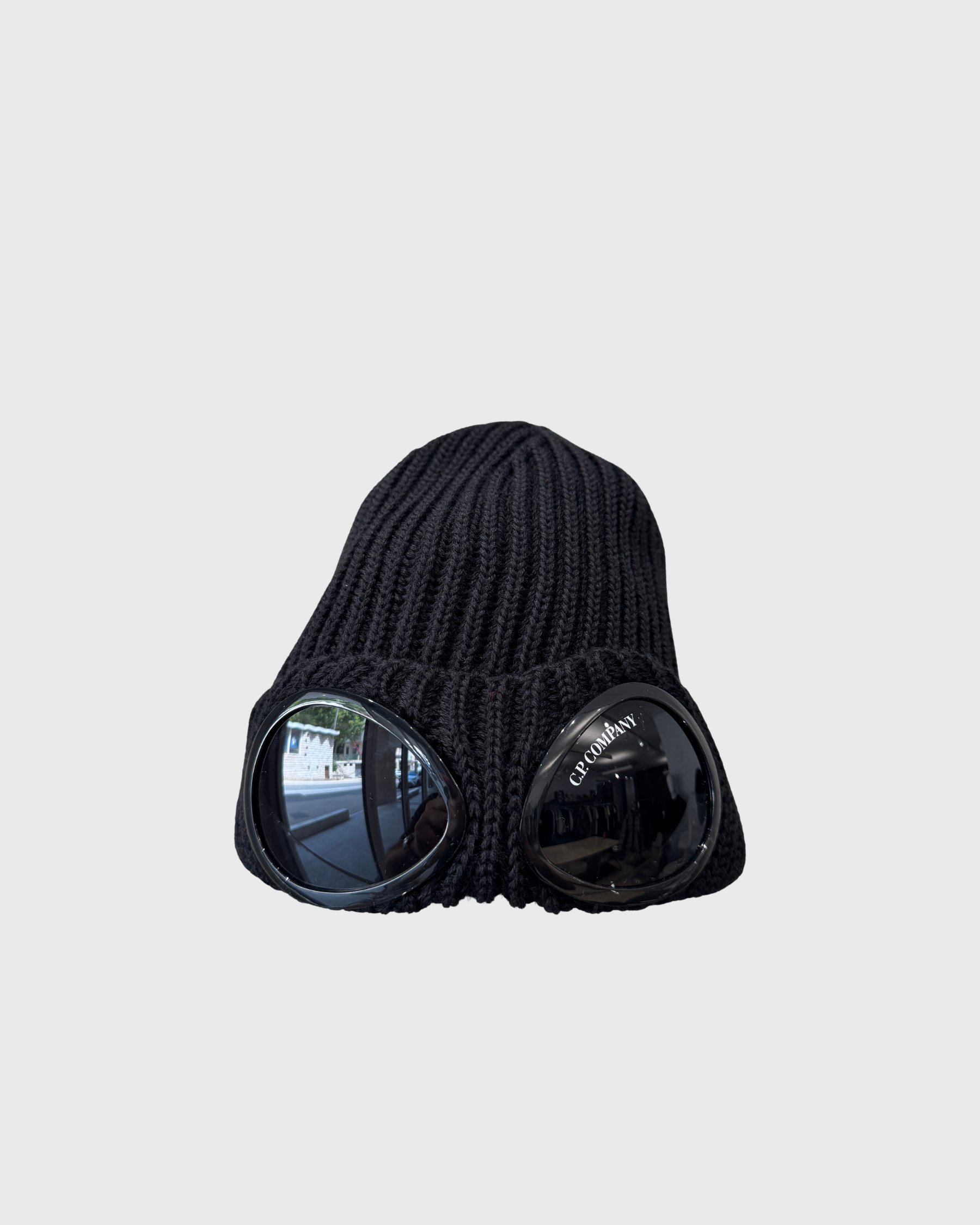 C.P. COMPANY – Bonnet Goggle en Laine Mérinos Noire