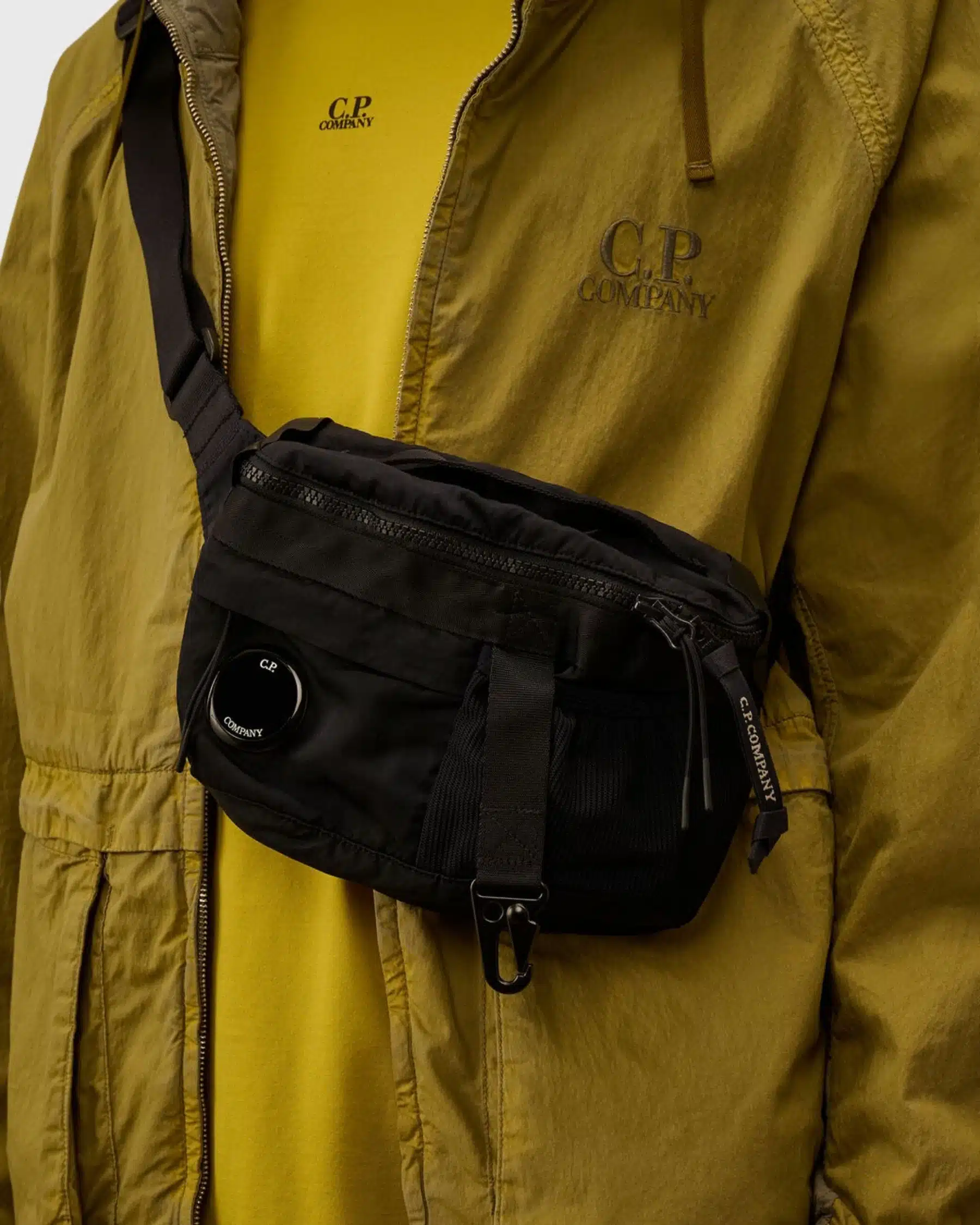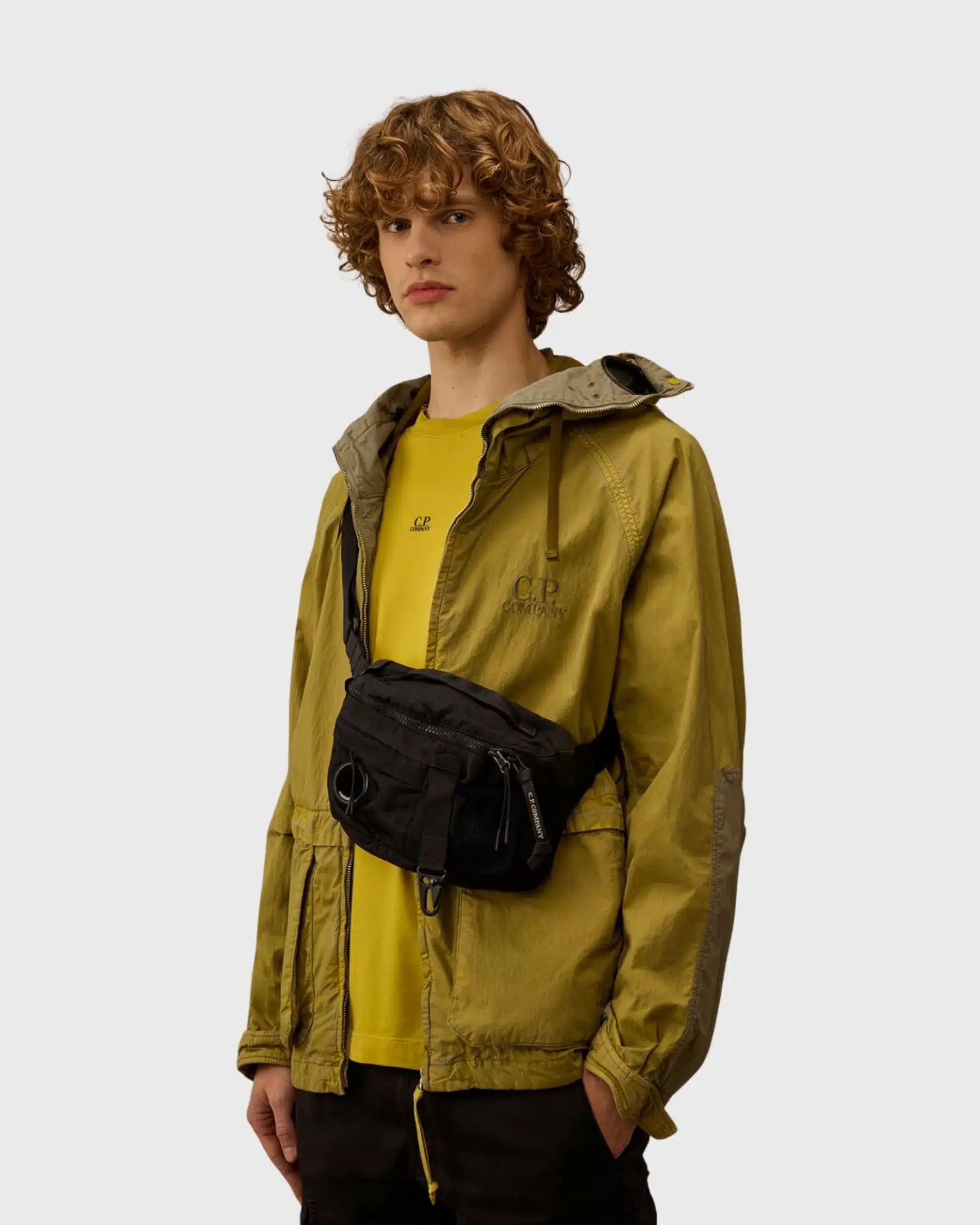 Le C.P. Company nylon B lens waistbag total eclipse peut se porter selon différentes silhouettes.