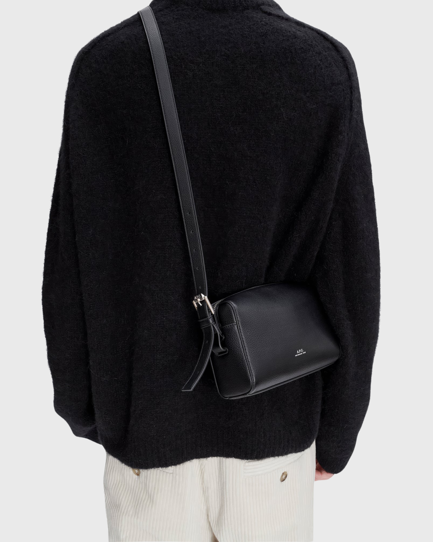 Ses dimensions (22 x 12 x 6,5 cm) en font un compagnon idéal pour la ville, les week-ends ou les déplacements. Il s’adapte à tous les styles grâce à sa silhouette sobre, typique de l’univers A.P.C.
