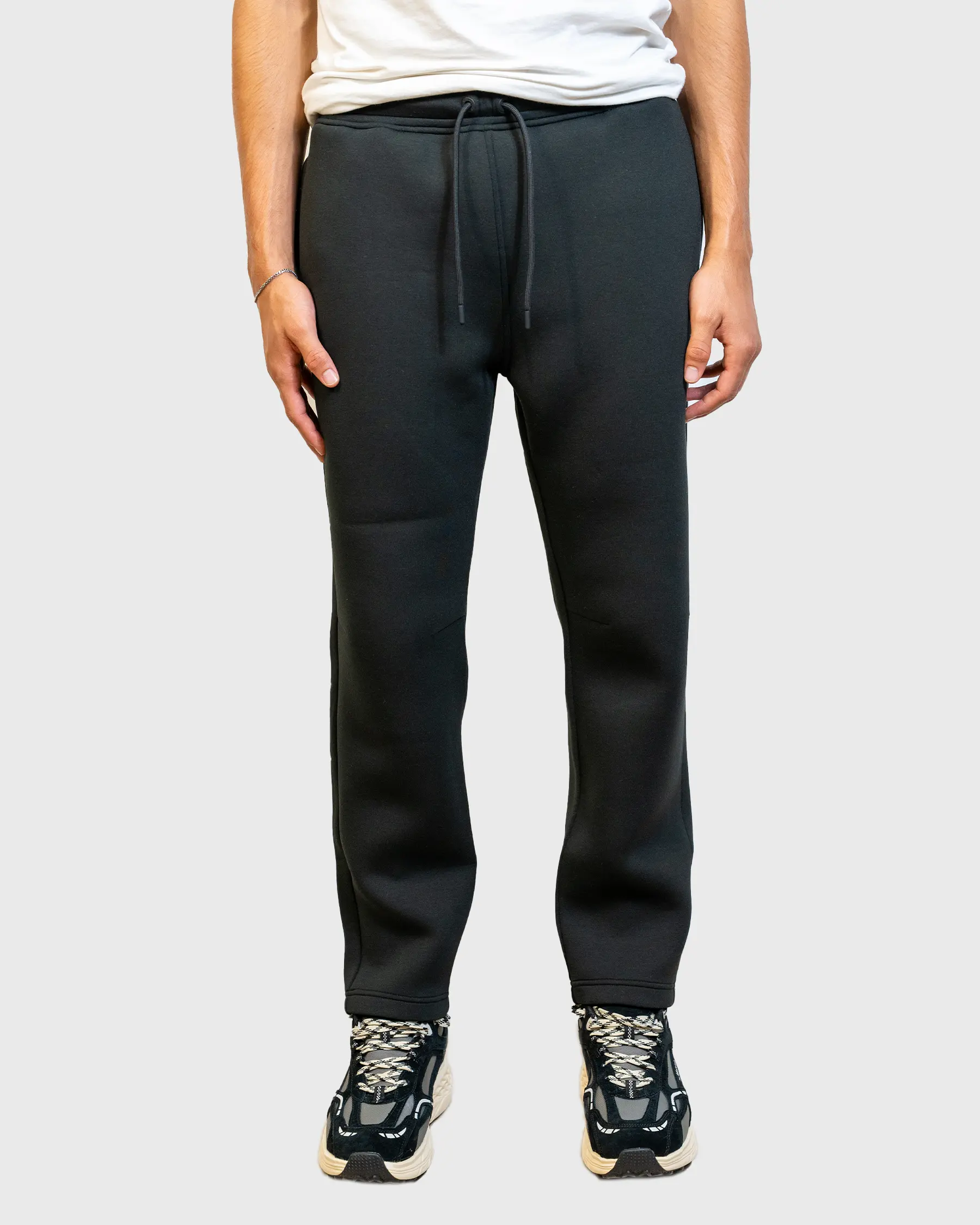 Sa coupe droite régulière s’adapte à toutes les morphologies. Sa taille élastiquée avec cordon de serrage permet un ajustement personnalisé, tandis que ses poignets de cheville côtelés assurent un maintien parfait et une touche moderne.