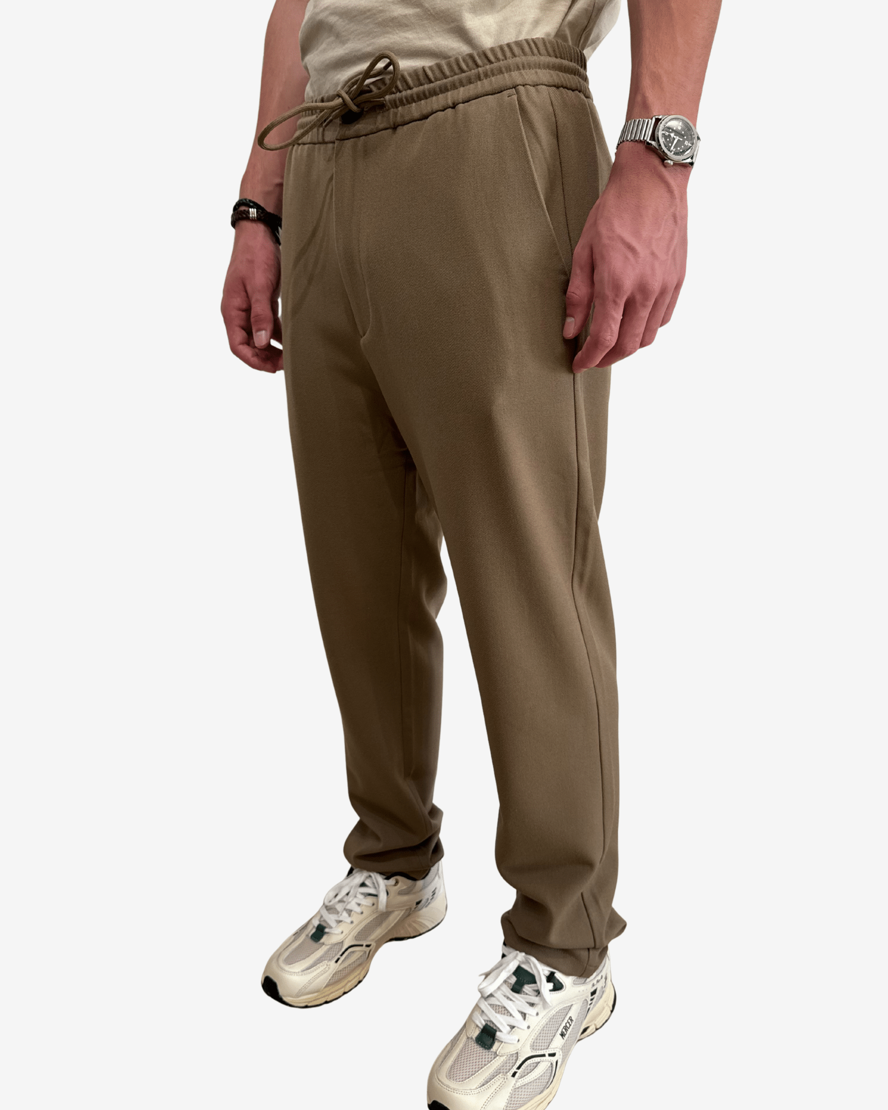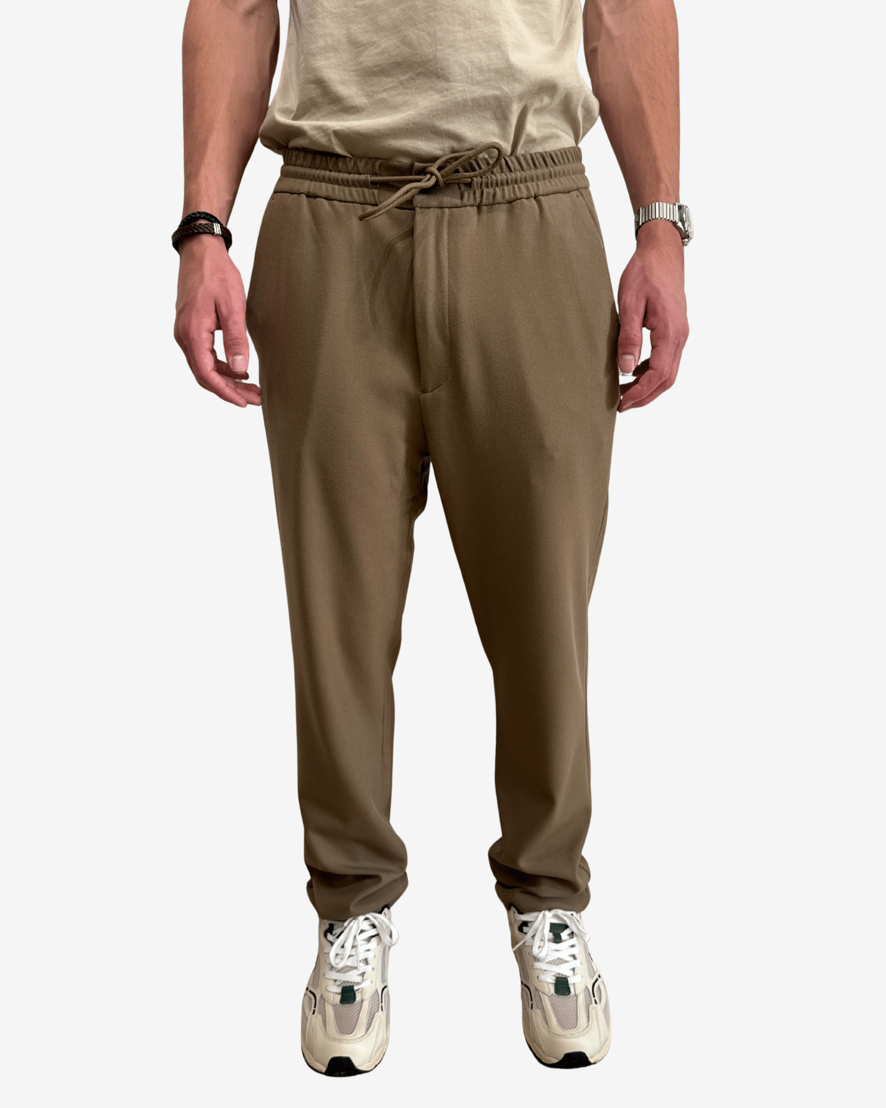 Il allie fonctionnalité, confort et esthétisme. Sa jambe fuselée régulière structure la silhouette, tandis que la ceinture élastiquée avec cordon permet un ajustement précis sans compromis sur l’allure. Le coloris caramel est un vrai passe-partout, facile à associer et toujours élégant.