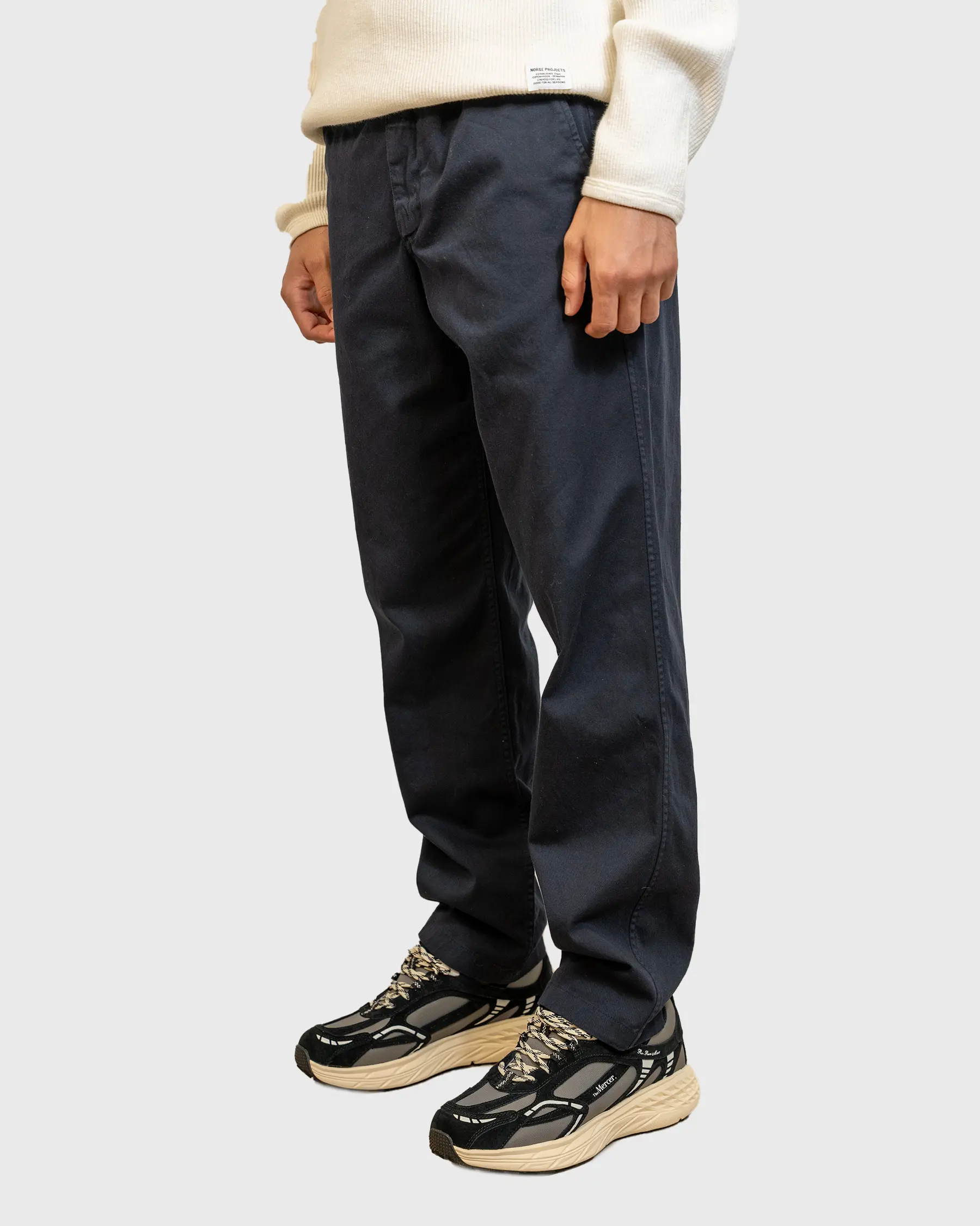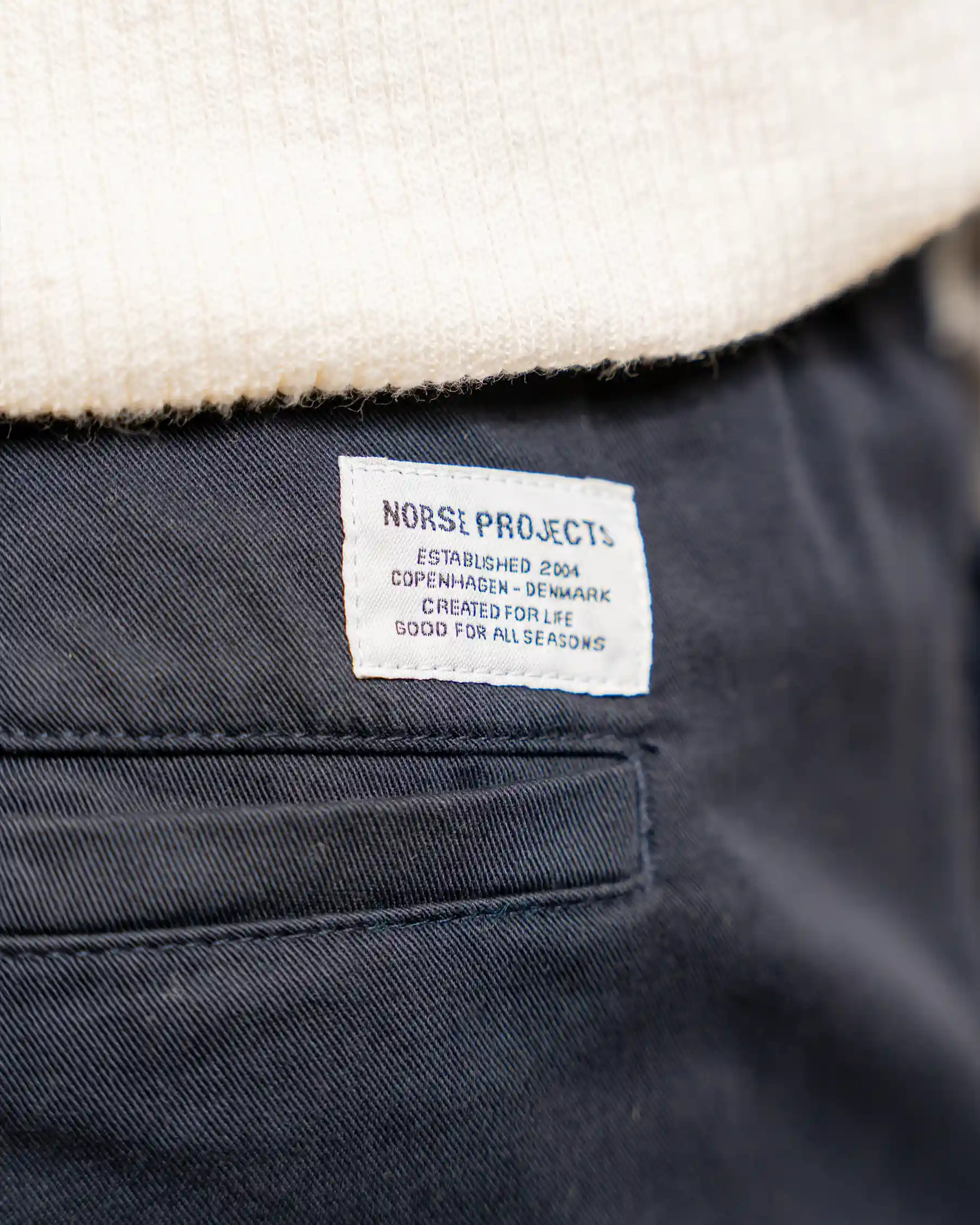 La teinte bleu profond apporte une touche intemporelle et polyvalente, facile à assortir avec une chemise habillée comme avec un simple t-shirt. Fidèle à l’ADN scandinave de Norse Projects, ce pantalon associe minimalisme, fonctionnalité et matières responsables.