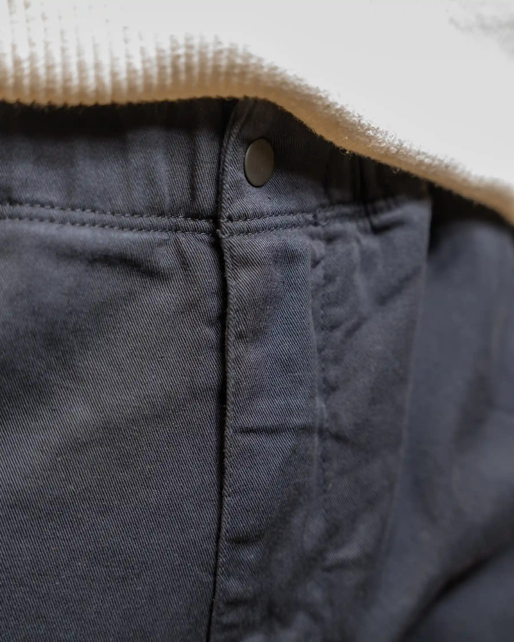 Avec sa taille mi-haute, sa ceinture élastiquée, sa fermeture par bouton et braguette zippée, ainsi que ses trois poches fonctionnelles, ce pantalon allie praticité et design épuré.