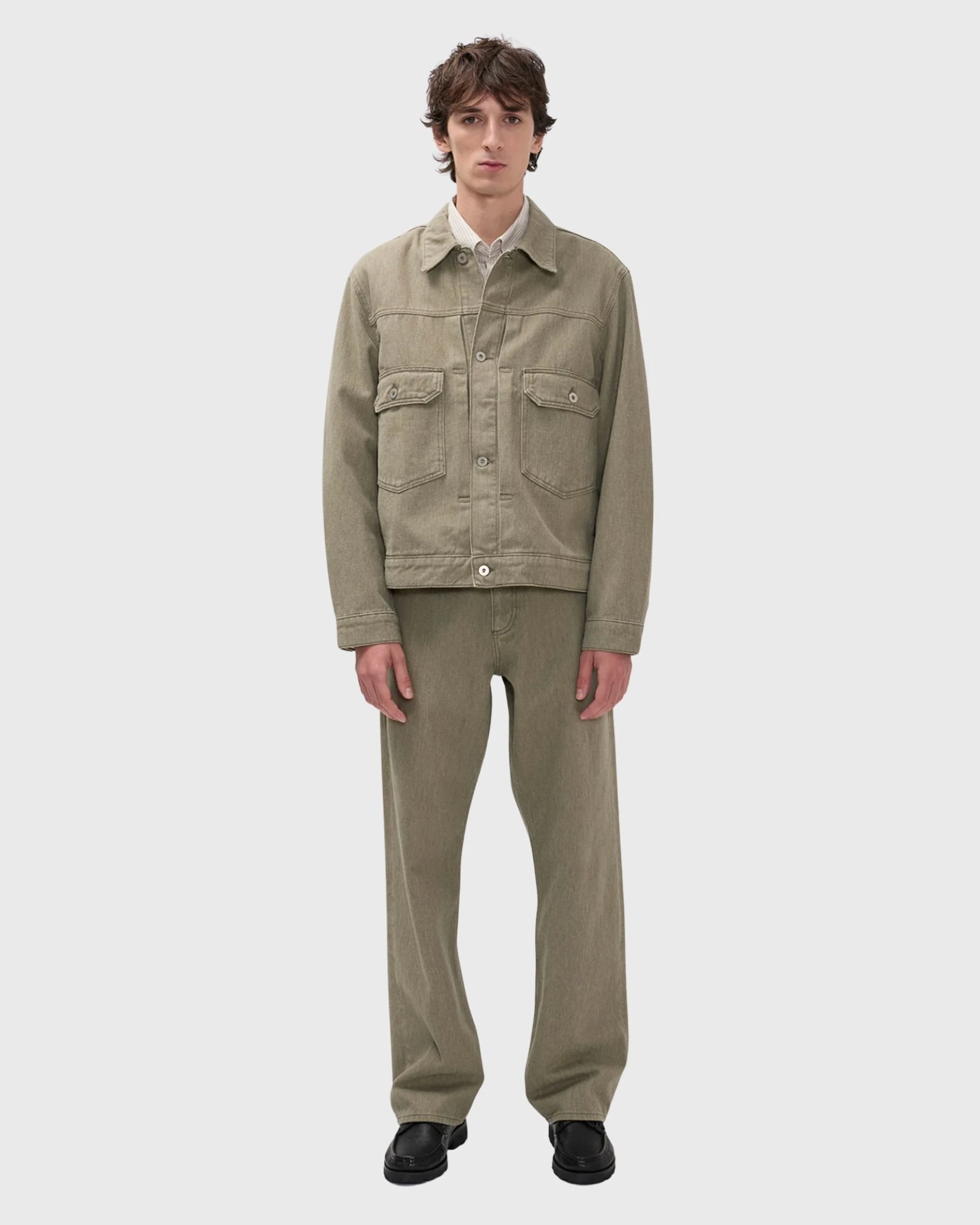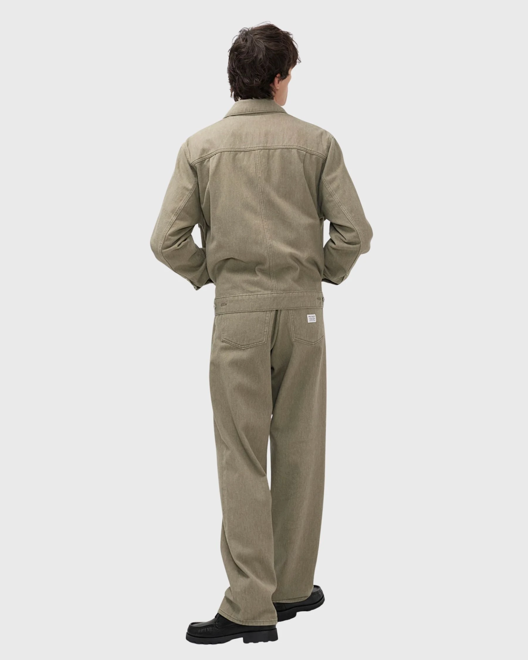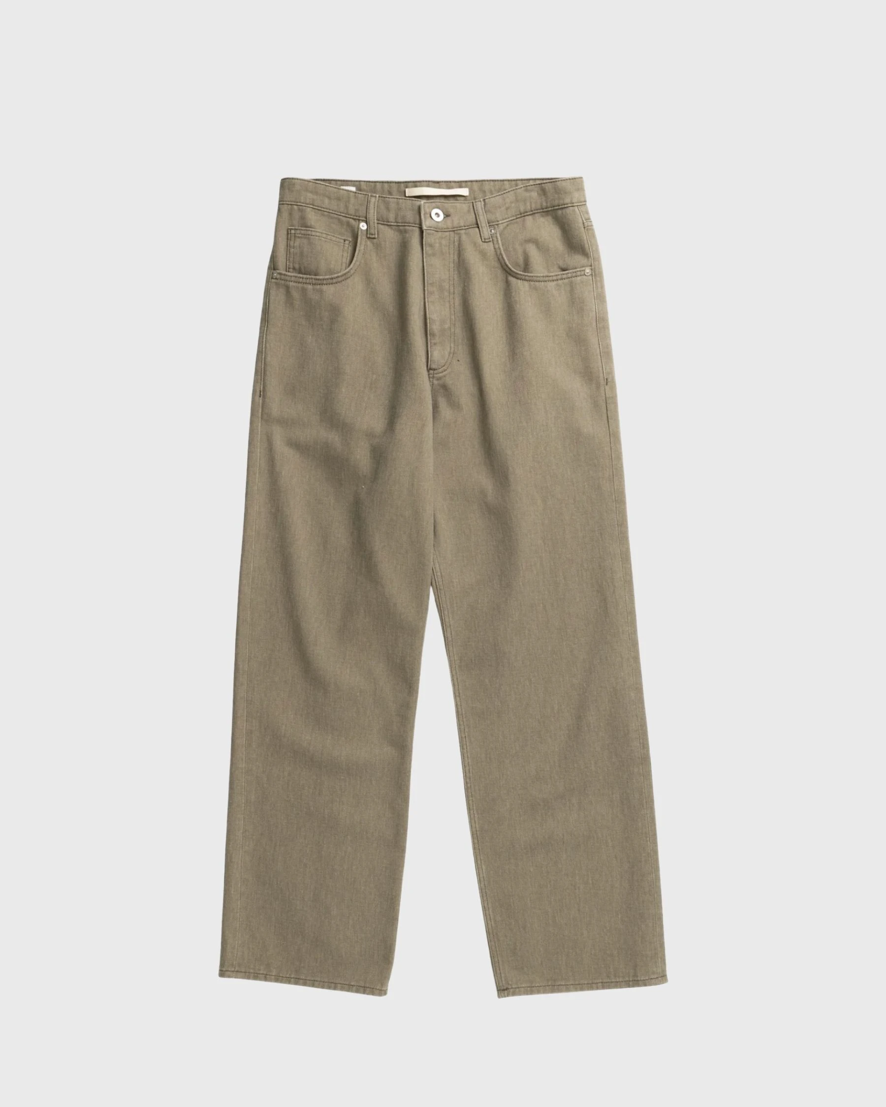 Sa taille légèrement plus haute et sa jambe ample qui se resserre subtilement vers le bas créent un équilibre parfait entre confort et élégance. Le coloris vetiver renforce son caractère naturel et intemporel.