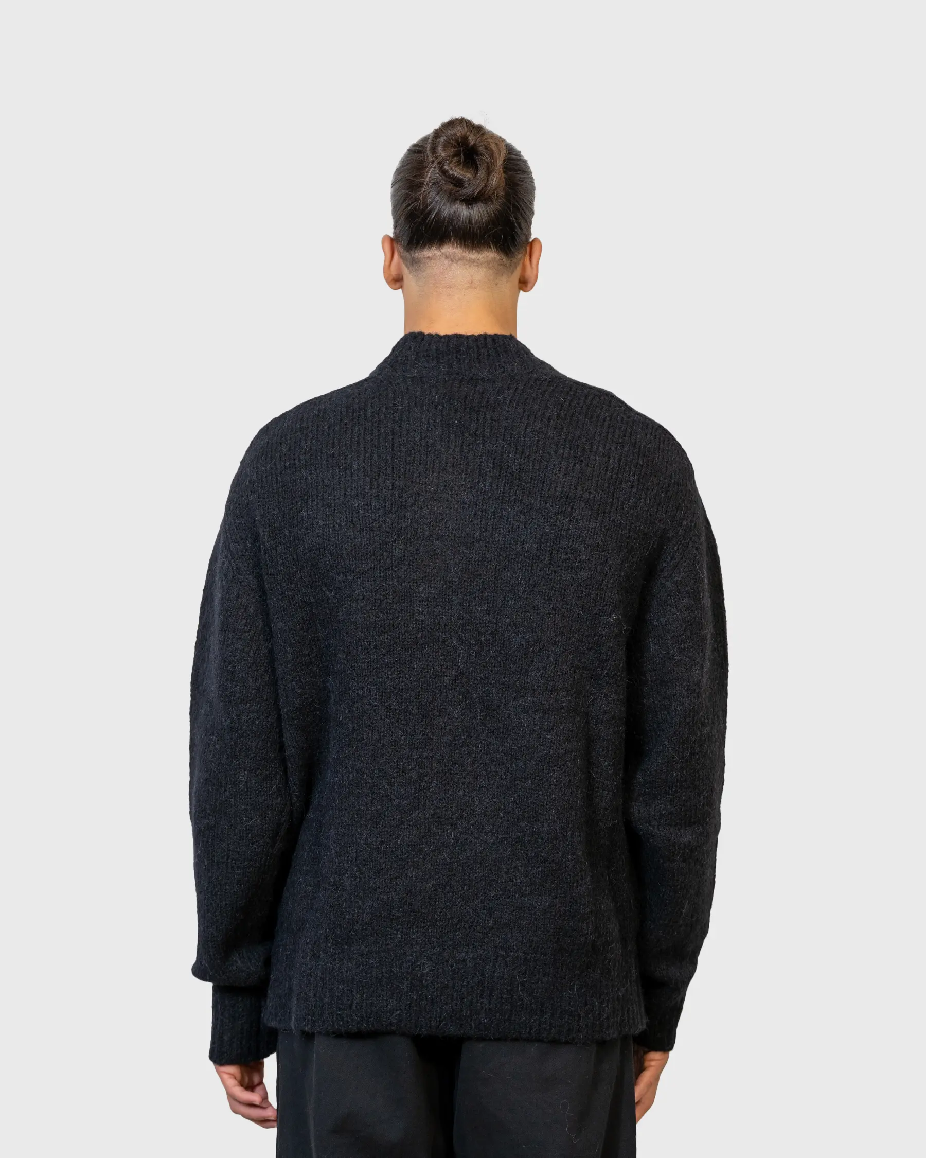 Le Pull Norse Projects noir Rasmus Mock Neck Relaxed Brushed Sweater est une pièce emblématique de la marque danoise, alliant sobriété, confort et qualité artisanale. Tricoté dans un mélange raffiné de 53 % alpaga, 23 % laine, 22 % polyamide et 2 % élasthanne, il offre une texture douce, chaude et légèrement duveteuse, idéale pour affronter les saisons froides avec style.