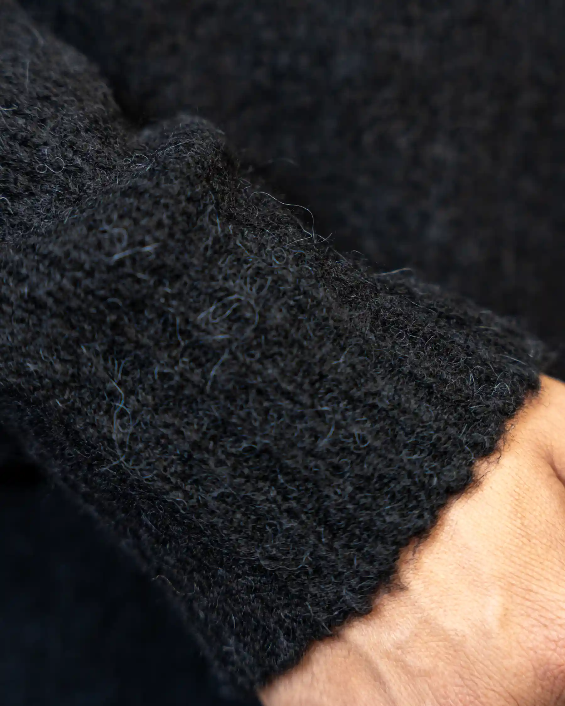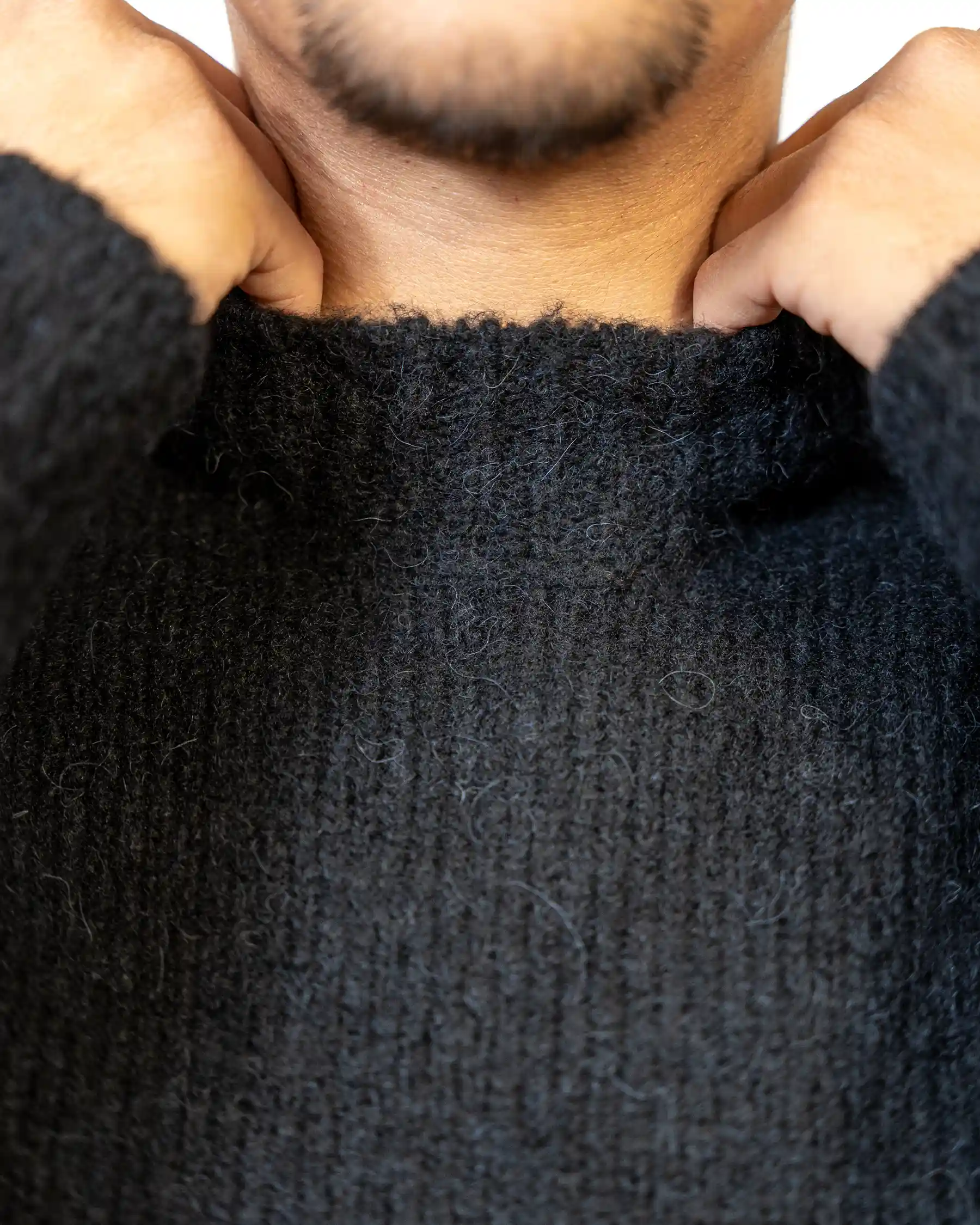 Parce qu’il conjugue matières nobles, confort et design nordique épuré. Ce pull noir en alpaga est une pièce essentielle du vestiaire masculin contemporain, alliant chaleur, douceur et allure premium.