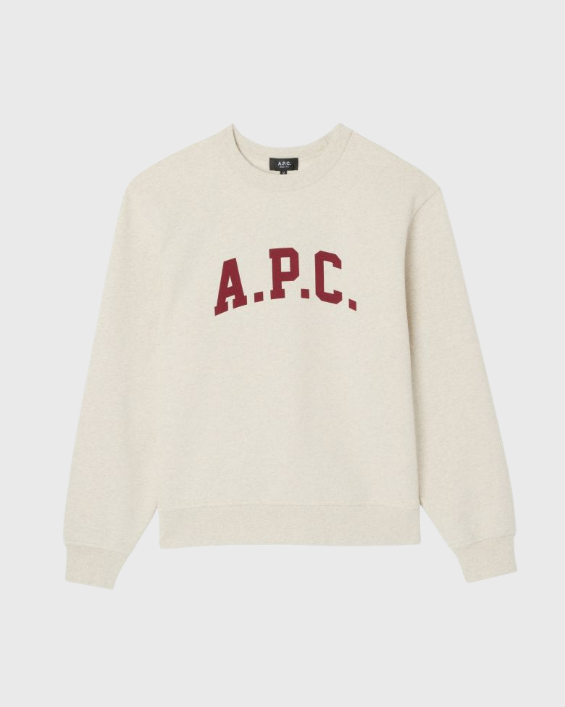 La base écrue chinée, douce et lumineuse, est contrastée par un écriture A.P.C rouge, évoquant l’univers du sportswear rétro. Sa coupe droite convient à toutes les silhouettes, tandis que sa finition soignée garantit une tenue durable.