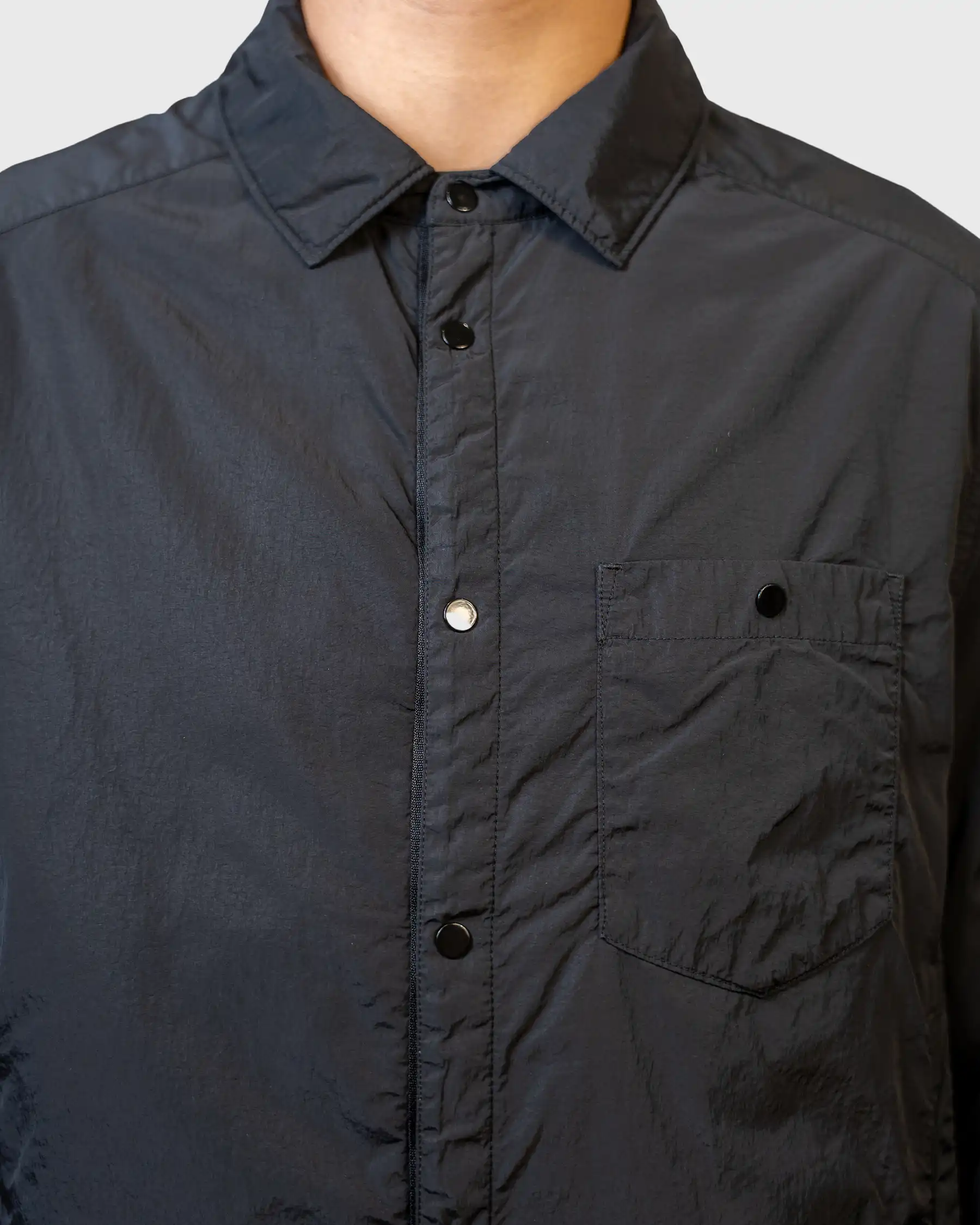 La Surchemise C.P. Company noire Chrome-R Lens Button Overshirt est une pièce iconique de la marque italienne, mêlant performance technique et design moderne. Confectionnée dans un nylon multifilament 100 % recyclé Chrome-R, elle reflète l’engagement écologique de la maison tout en garantissant résistance, confort et légèreté.