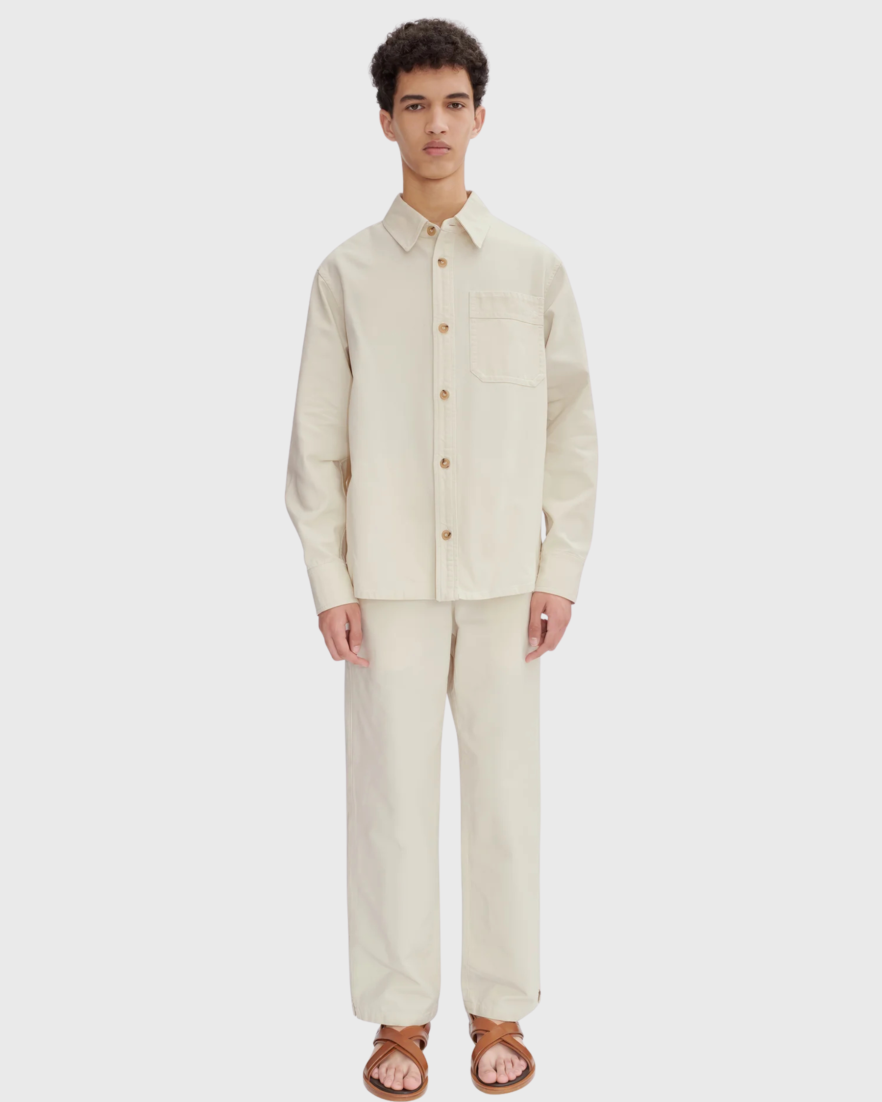 La surchemise A.P.C Basile off-white incarne à merveille l’ADN de la marque parisienne : des lignes épurées, des teintes neutres et des finitions impeccables. Sa coupe droite et sa teinte ivoire lumineuse en font une pièce facile à porter, aussi bien comme veste légère que comme chemise structurée.