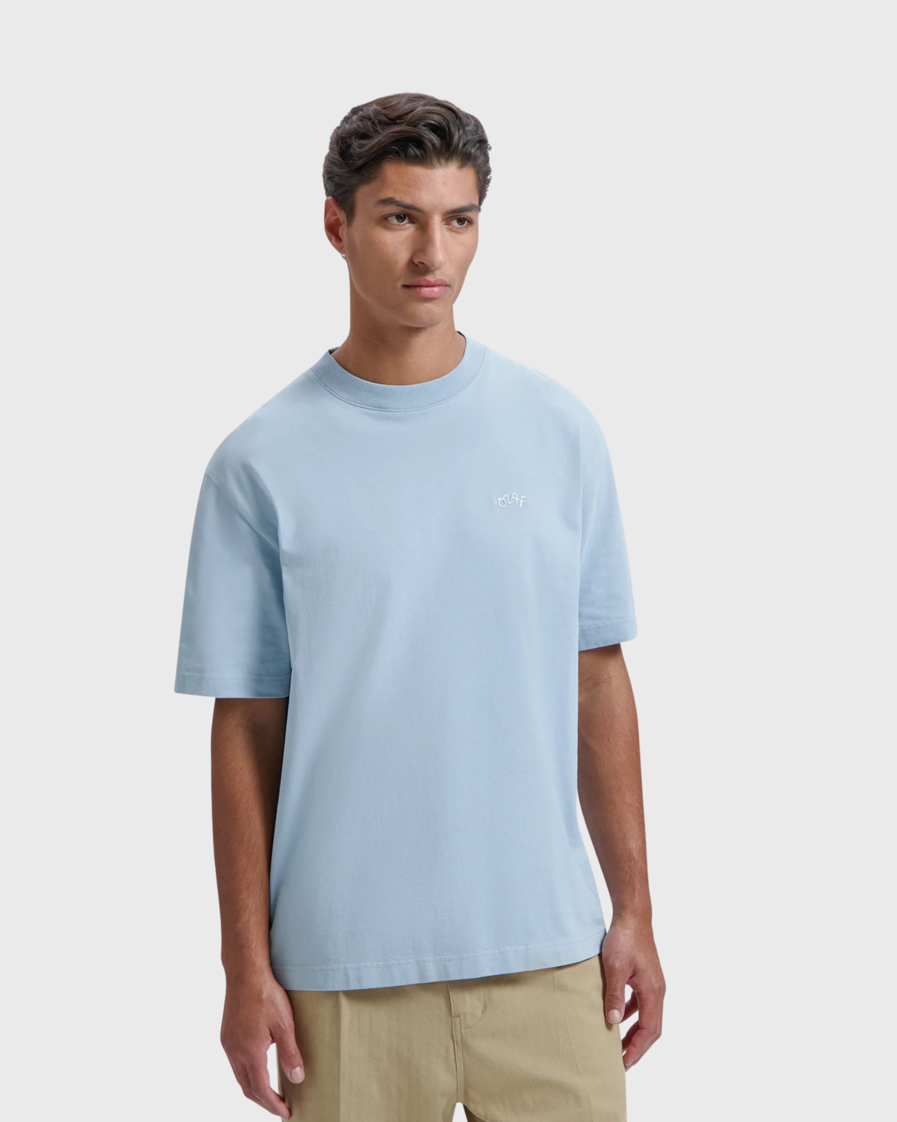 Olaf Hussein t-shirt Signature Baby Blue : le basique moderne en coton bio