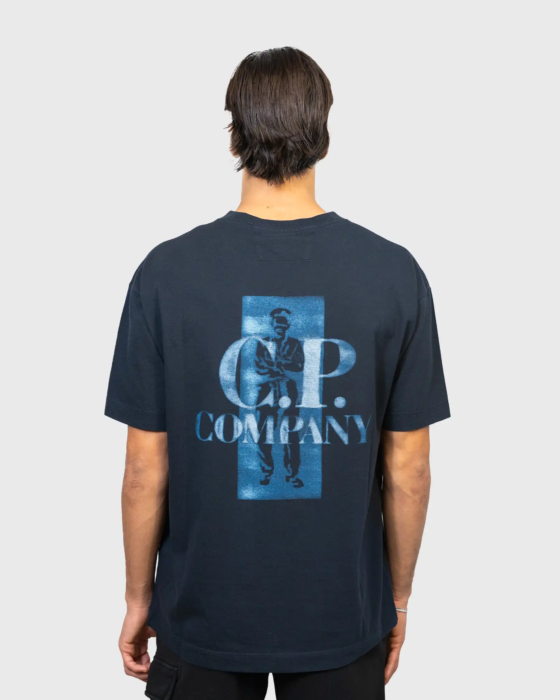 ‐ Logo C.P. Company bleu acier imprimé sur la poitrine