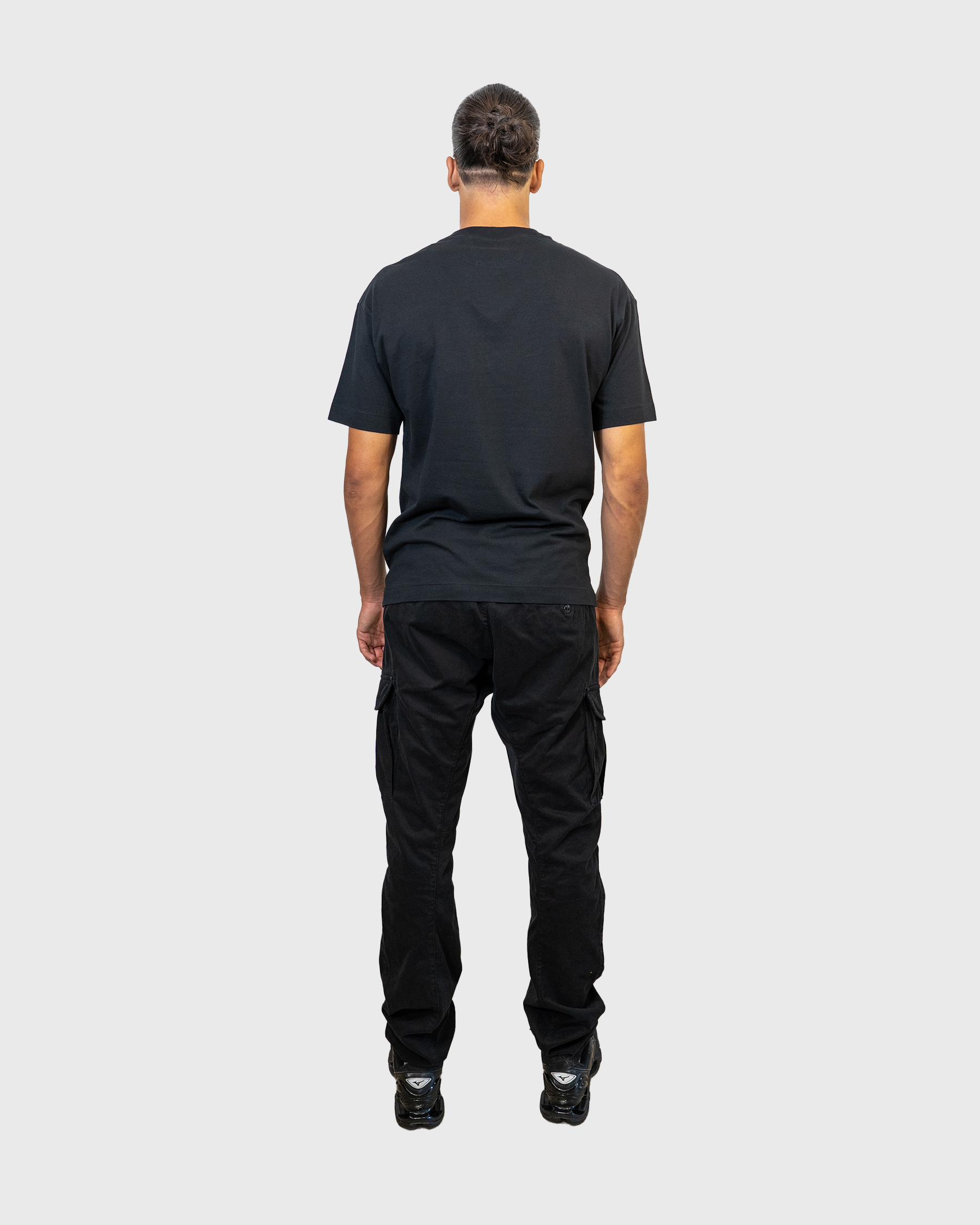 Associez ce T-shirt noir avec un pantalon cargo technique ou un jean brut pour un style street élégant. Il fonctionne aussi parfaitement avec une veste légère C.P. Company ou un sweat zippé pour un total look urbain.