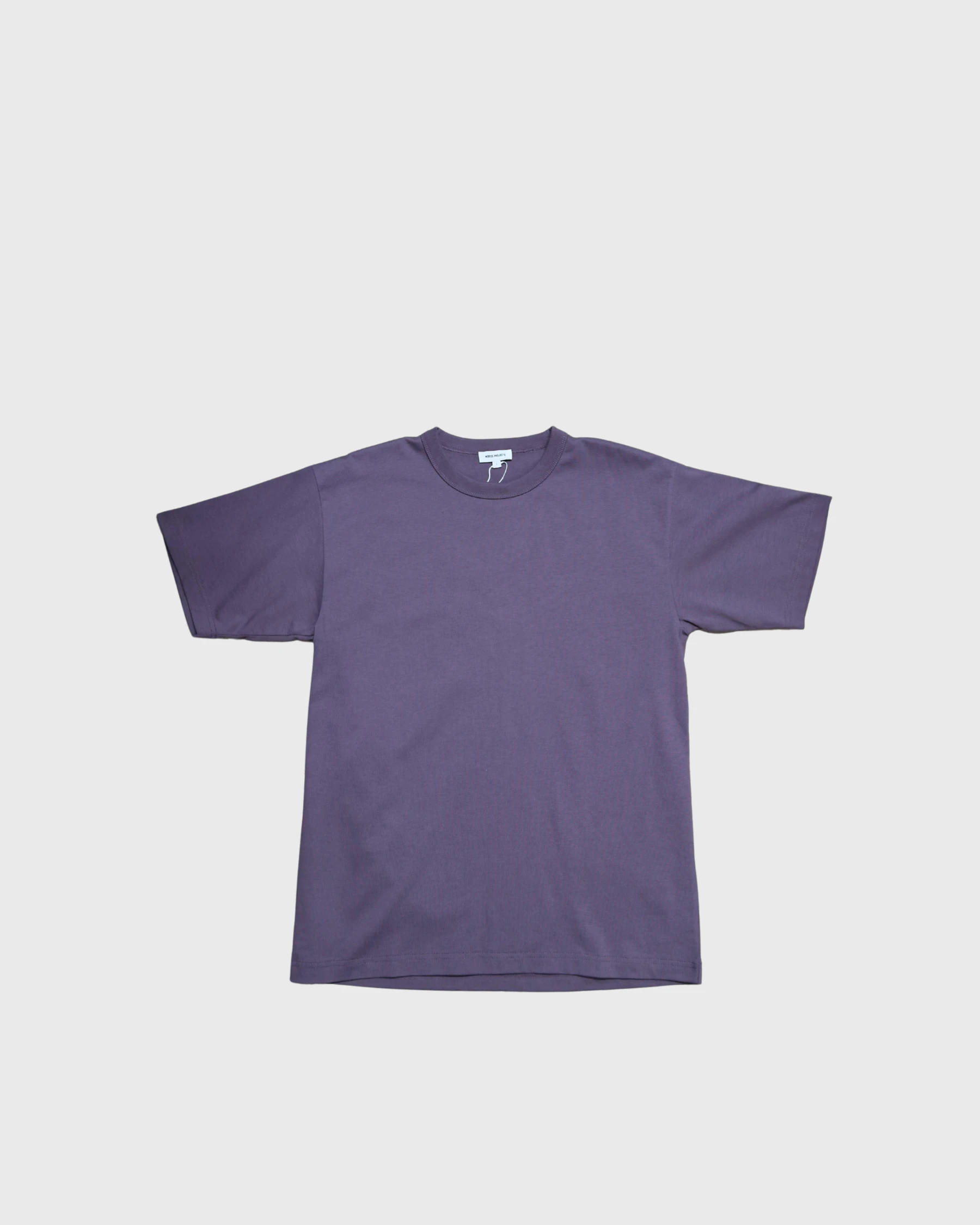 Le t-shirt Norse Projects violet se porte facilement avec un jean brut, un pantalon beige ou un short navy.
