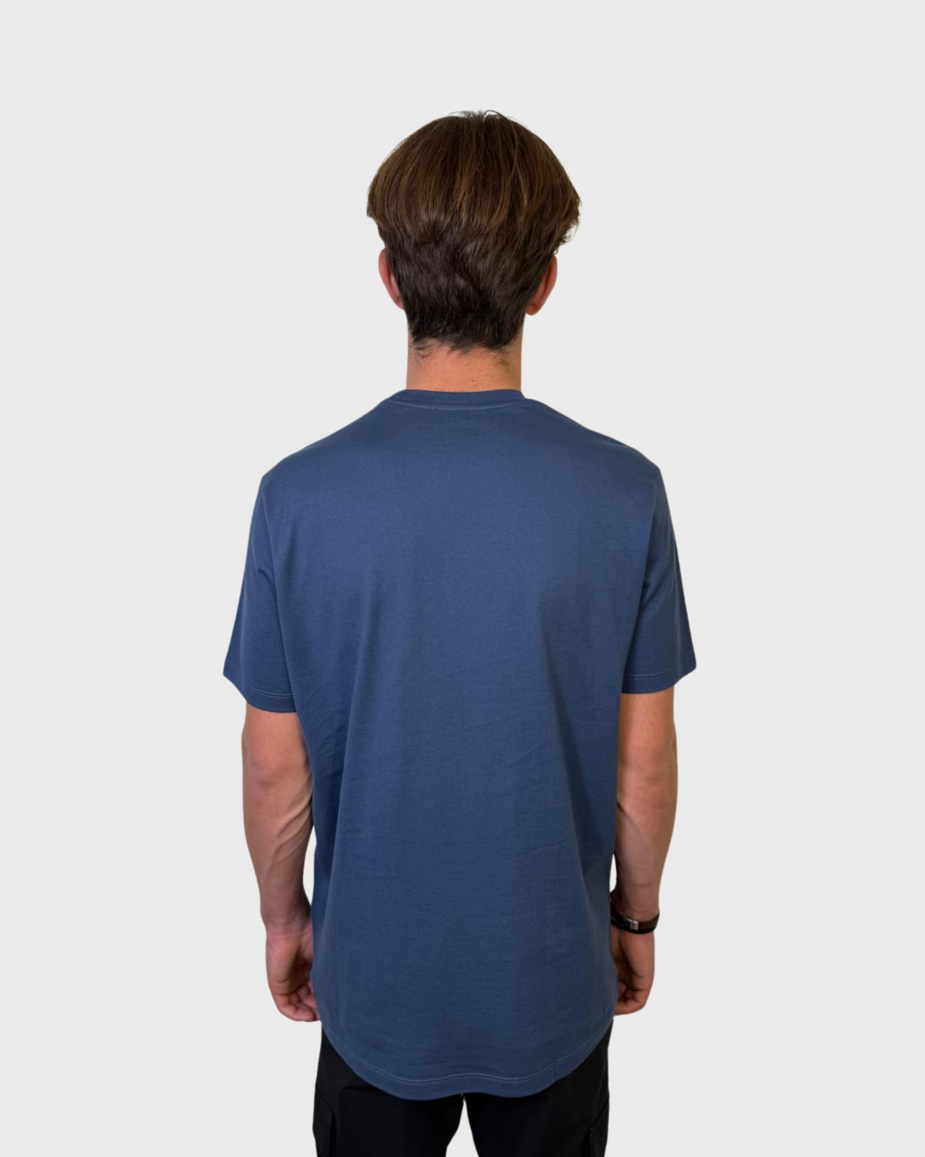 Le petit logo brodé shark signature en ton sur ton confère une finition discrète et raffinée. Le style regular fit et les manches courtes le rendent polyvalent : il se porte avec aisance sous une veste ou seul, pour une silhouette casual chic. Le coloris bleu vintage ajoute une note subtile mais affirmée, parfaite pour un vestiaire masculin casual.