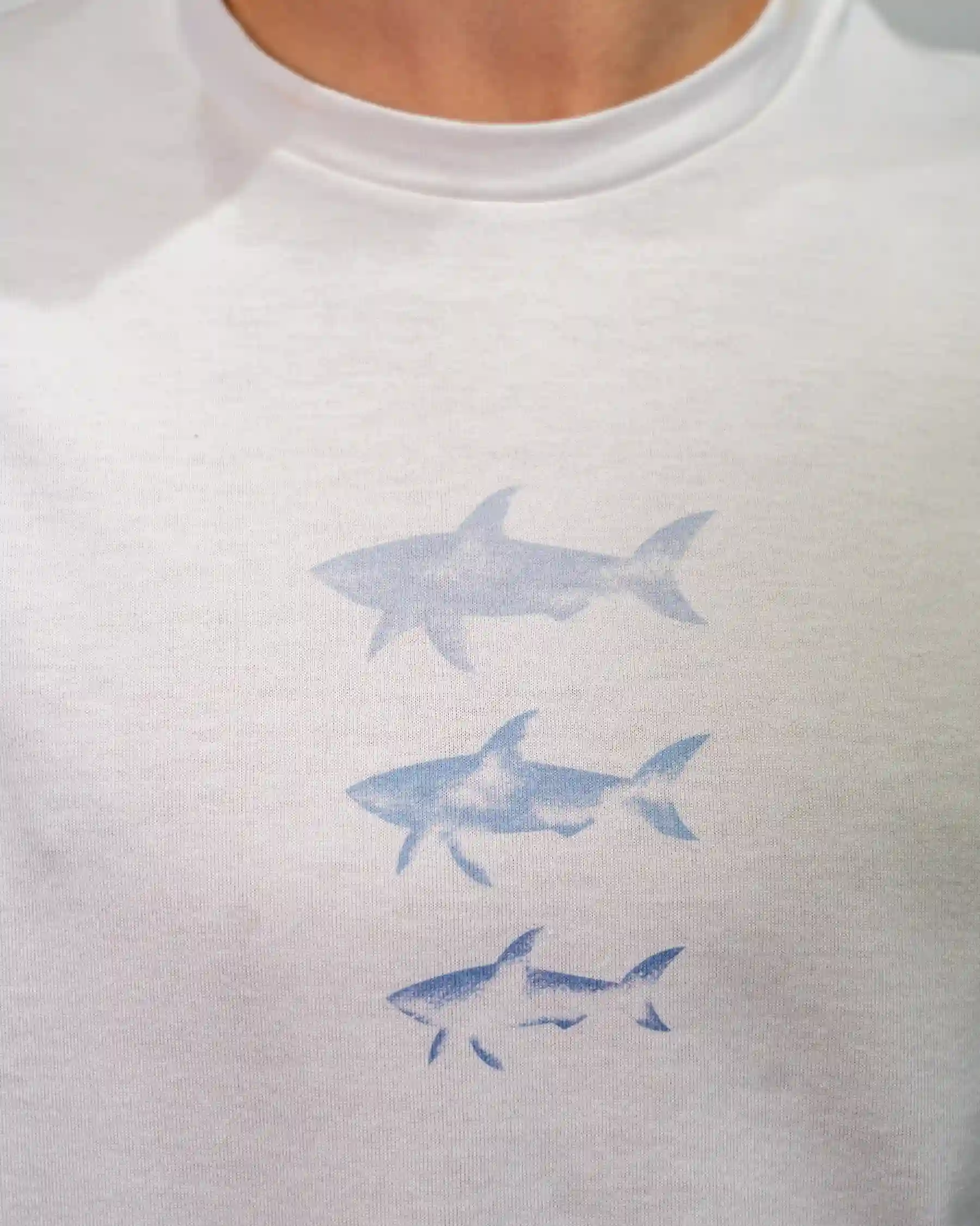 Le tshirt Paul & Shark blanc Triple Shark reflète parfaitement l’ADN marin et l’élégance sportive de Paul & Shark. Sur une base blanche lumineuse, l’imprimé Triple Shark apporte une signature graphique forte, inspirée de l’univers océanique propre à la maison italienne.