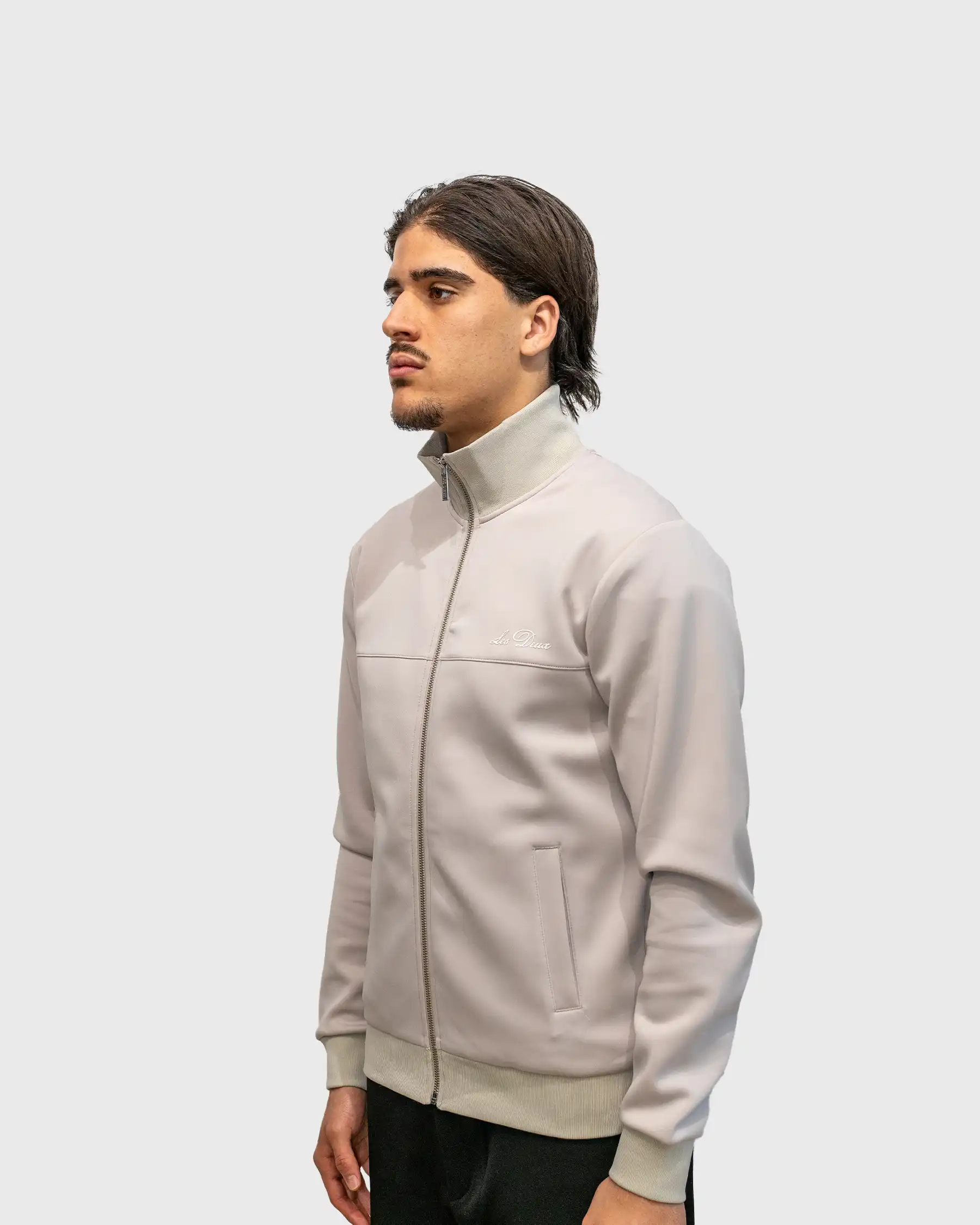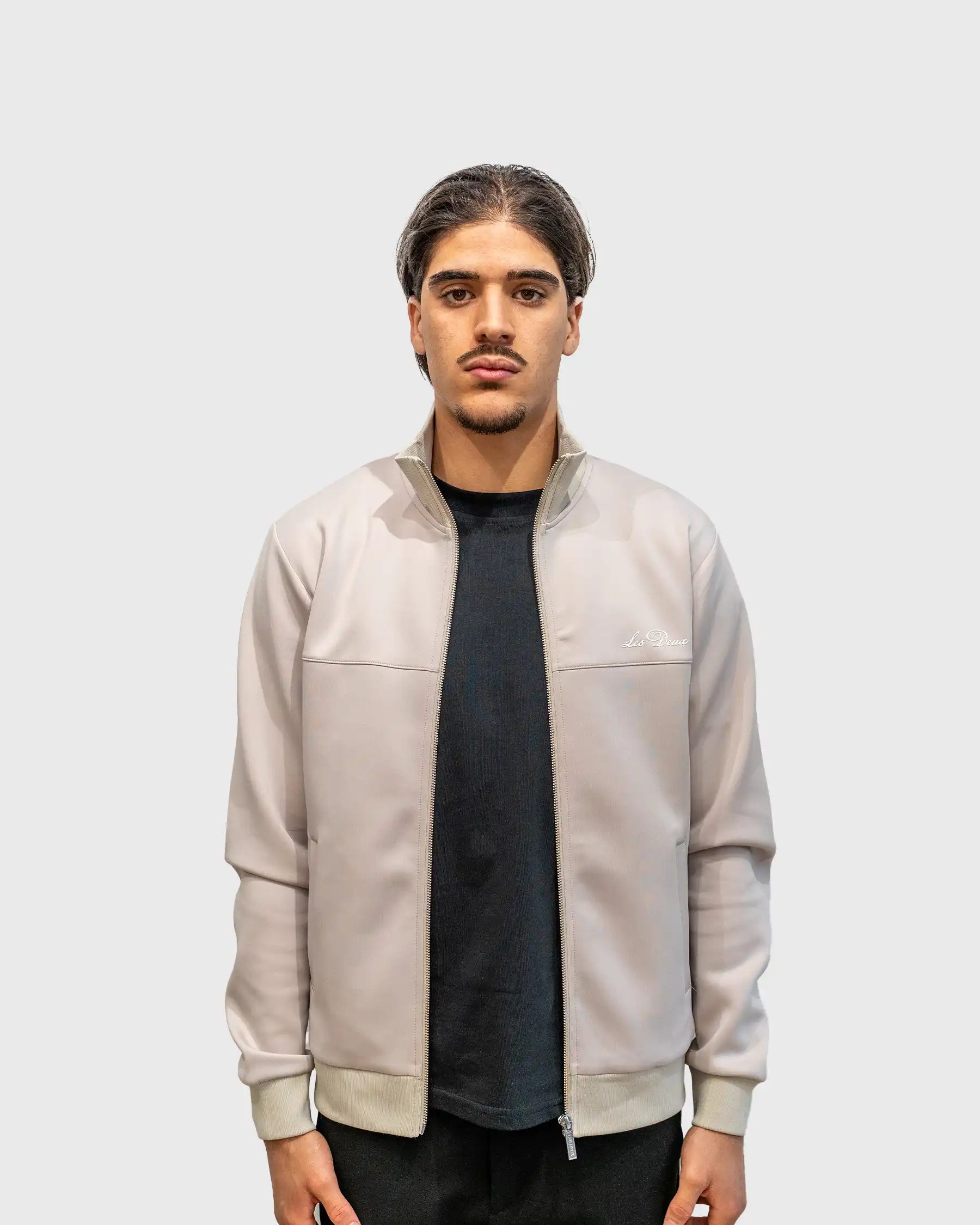 La veste beige Les Deux se porte idéalement en ensemble coordonné avec le pantalon Track Ballier Crew Les deux pour une silhouette monochrome sophistiquée.