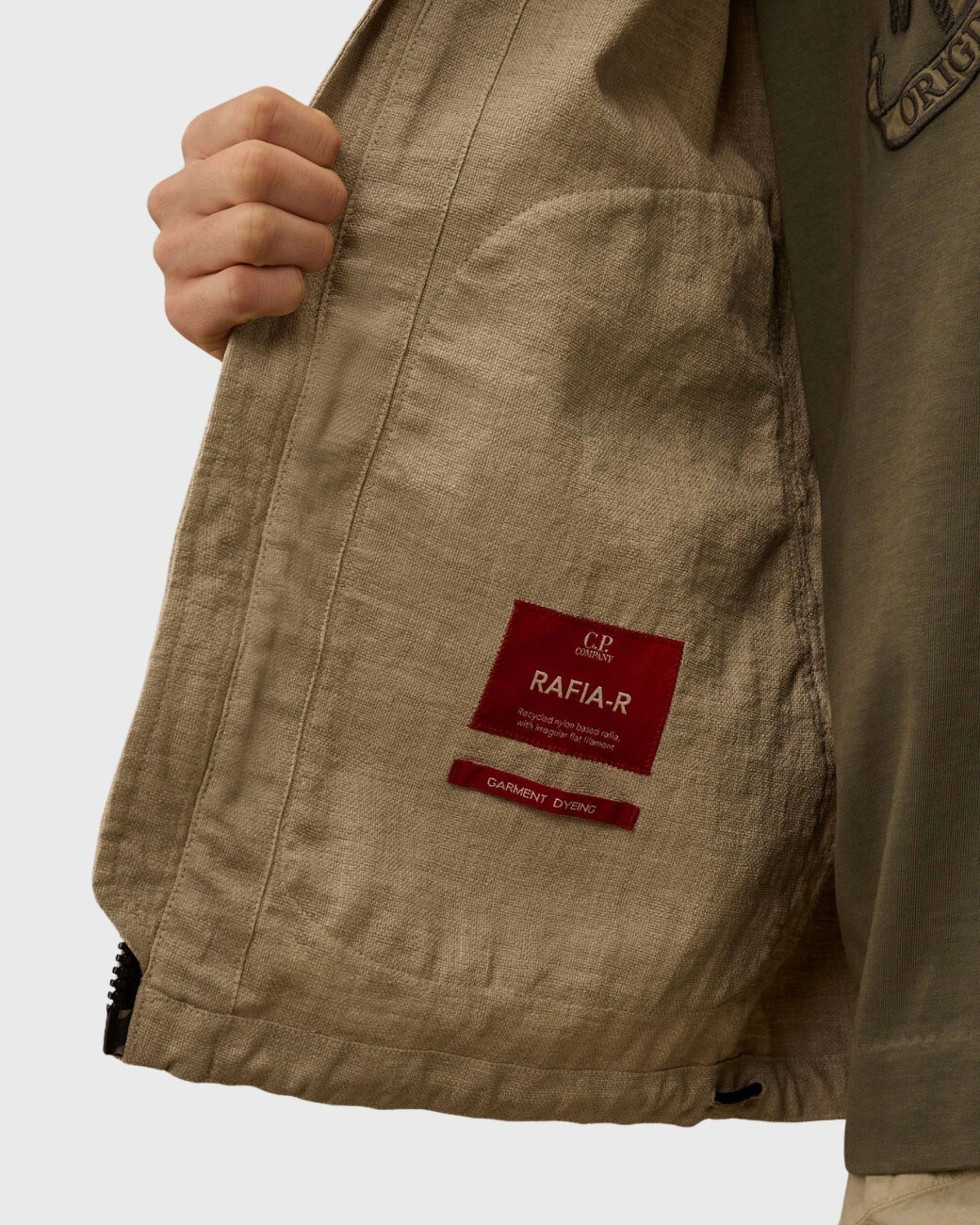 Cette veste C.P. Company Rafia-R Mixed Goggle est confectionnée en Rafia-R, un tissu en nylon recyclé fabriqué à partir de filaments plats irréguliers et laminé au verso. Cette construction donne à la pièce un aspect plus texturé, plus dense et plus technique qu’une veste classique.
