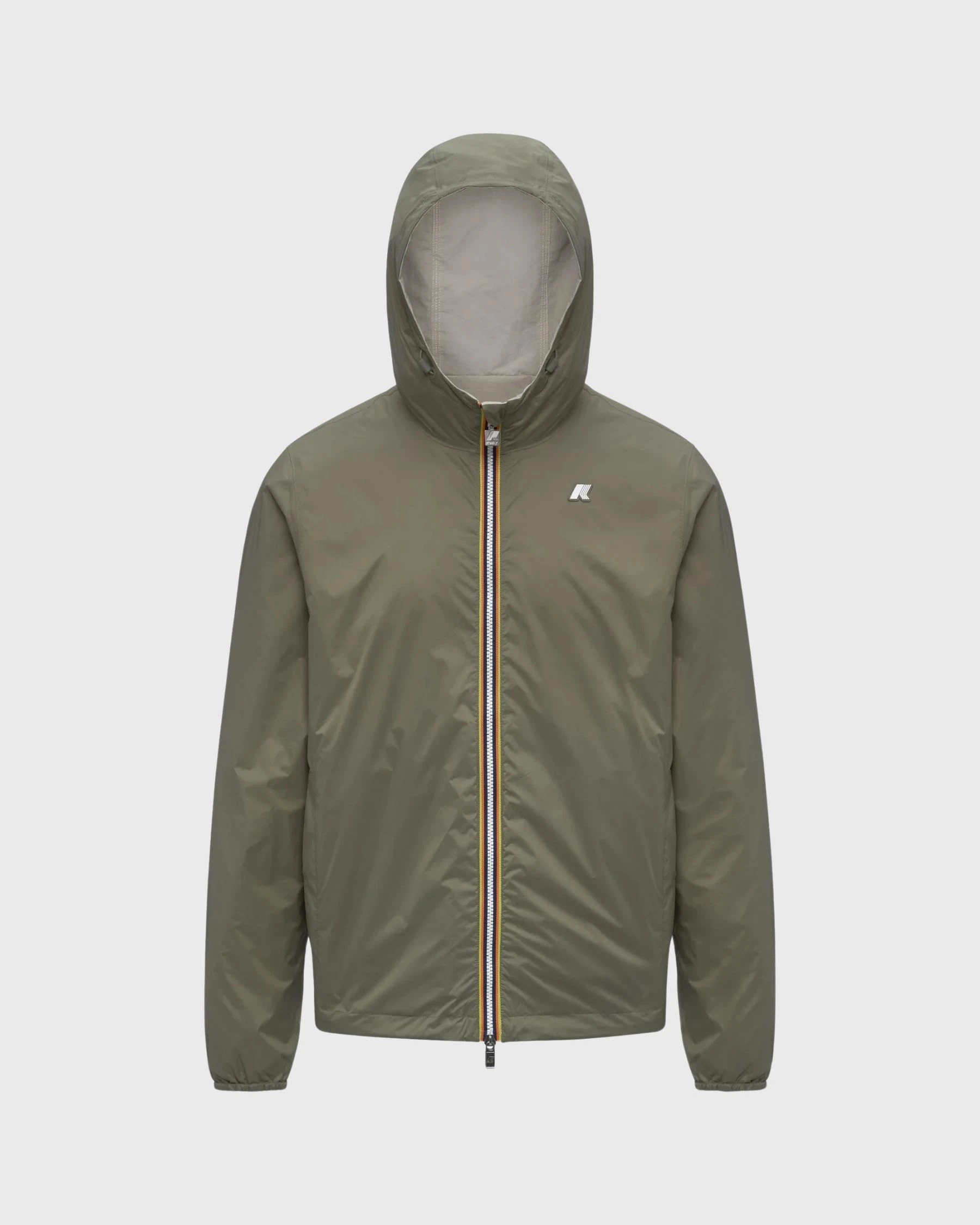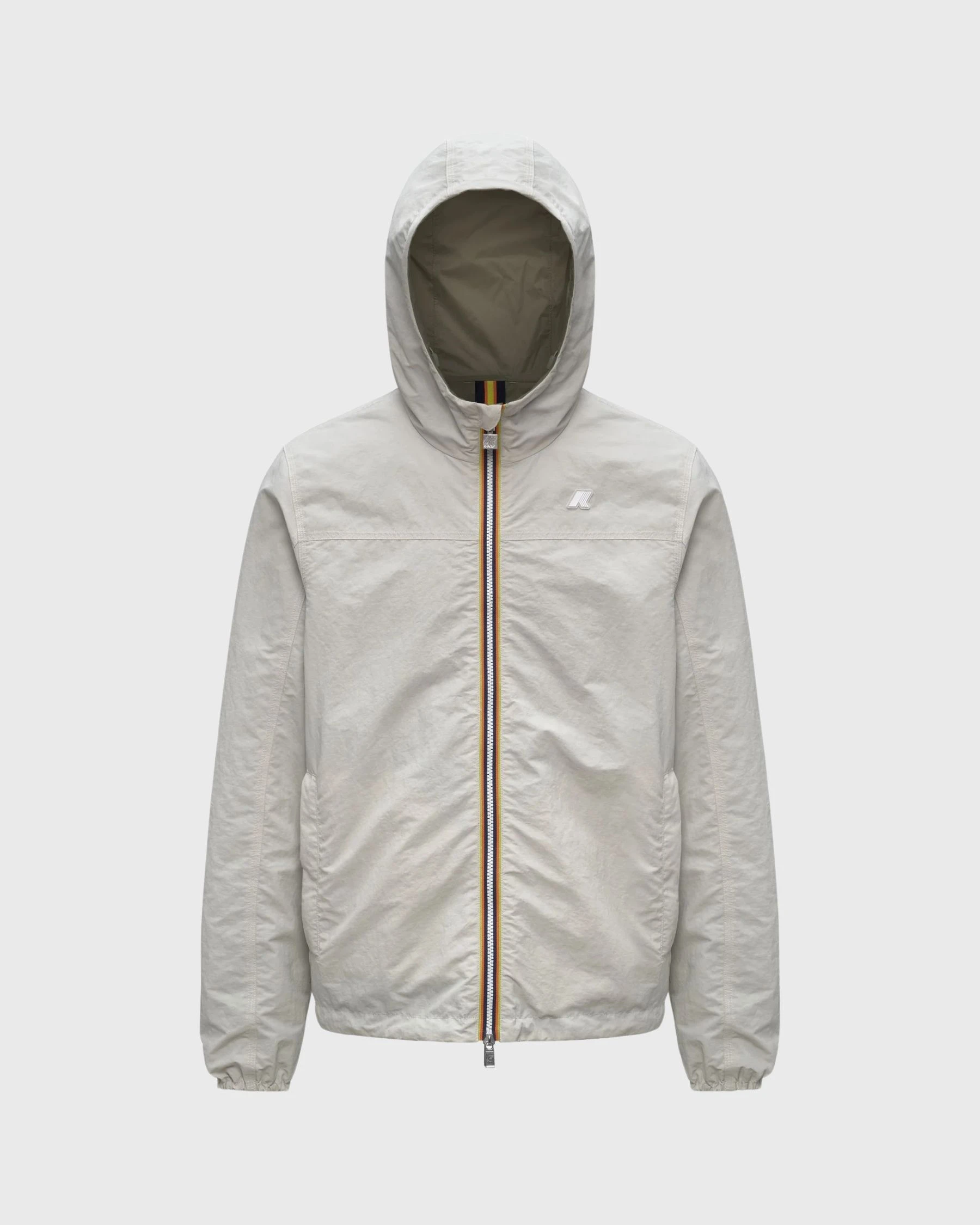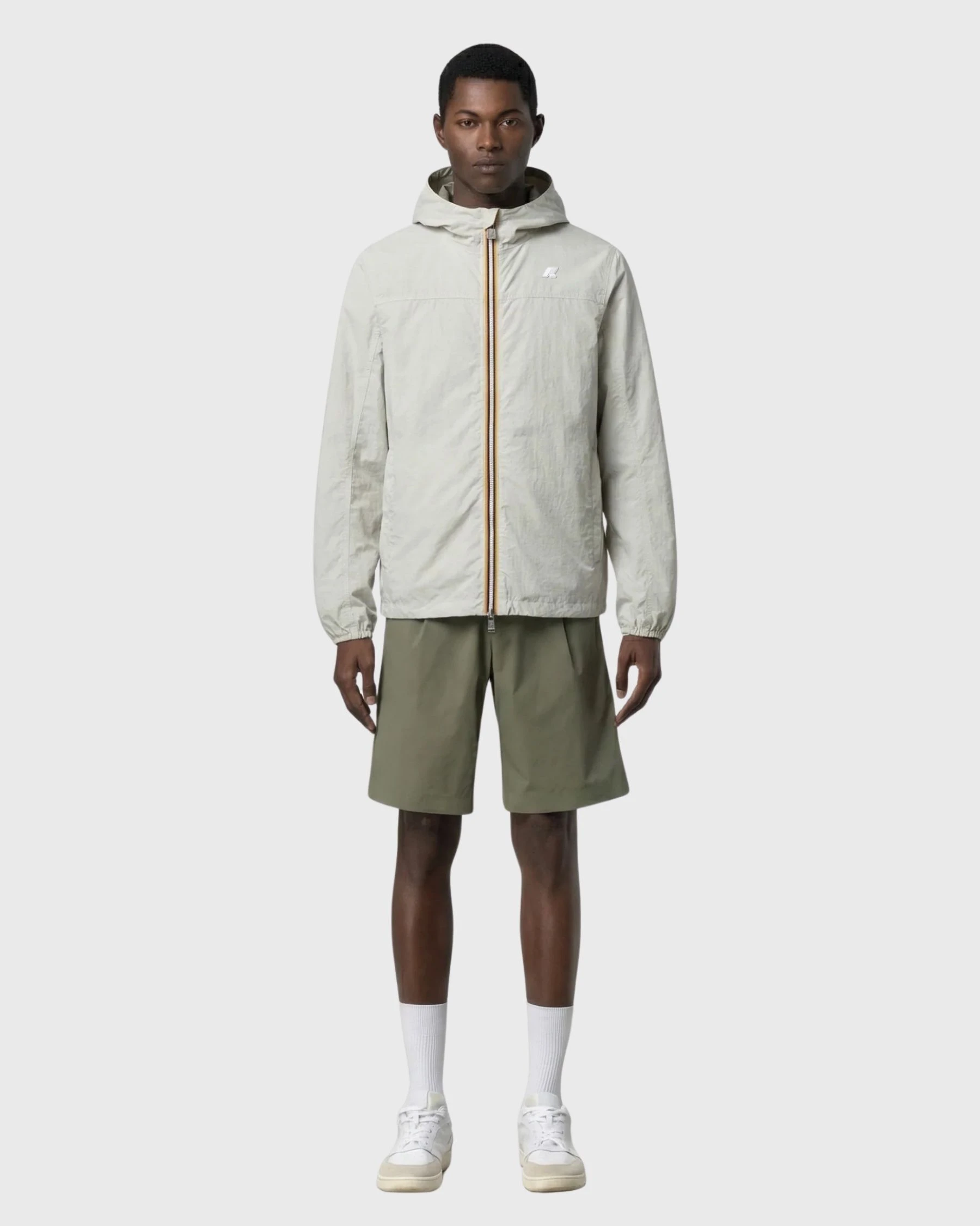 La veste imperméable K-Way Jake Beige combine style et fonctionnalité. Son design réversible permet de varier les looks facilement.