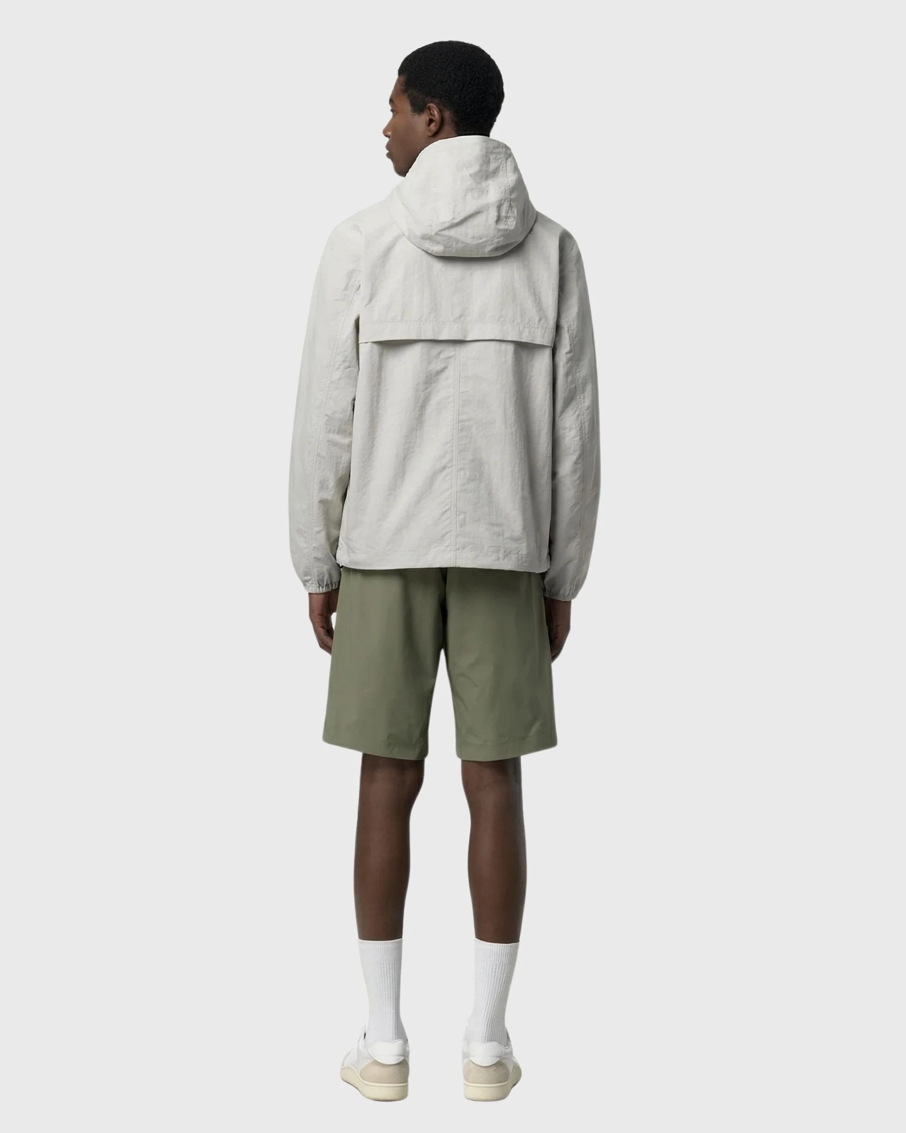 Le tissu extérieur mélange coton et nylon recyclé. Il bénéficie d’un traitement déperlant. Le tissu intérieur en nylon recyclé est waterproof. Il résiste à 3 000 mm de colonne d’eau.