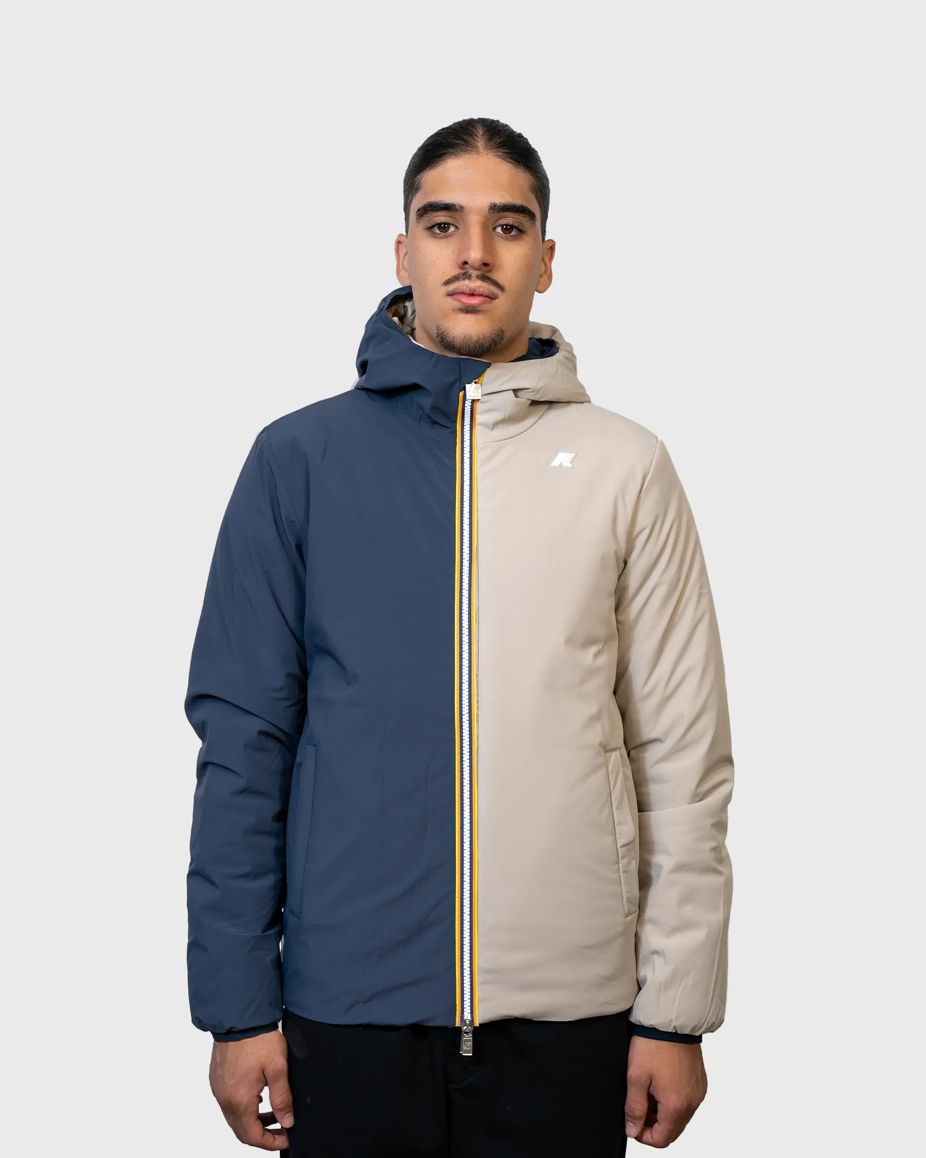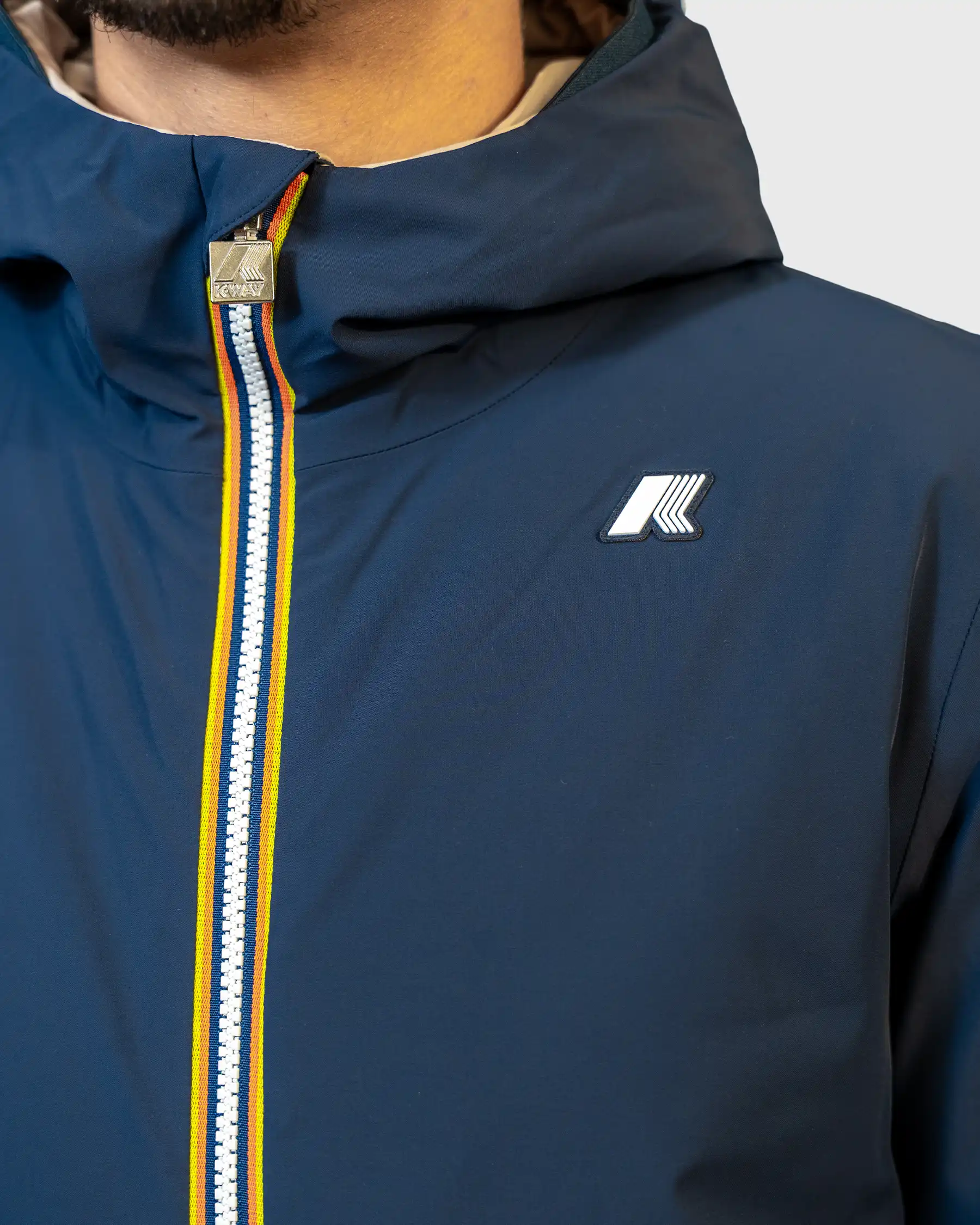 K-WAY – Veste Zippée Capuche Réversible Jack St Warm Blue Depth et Beige