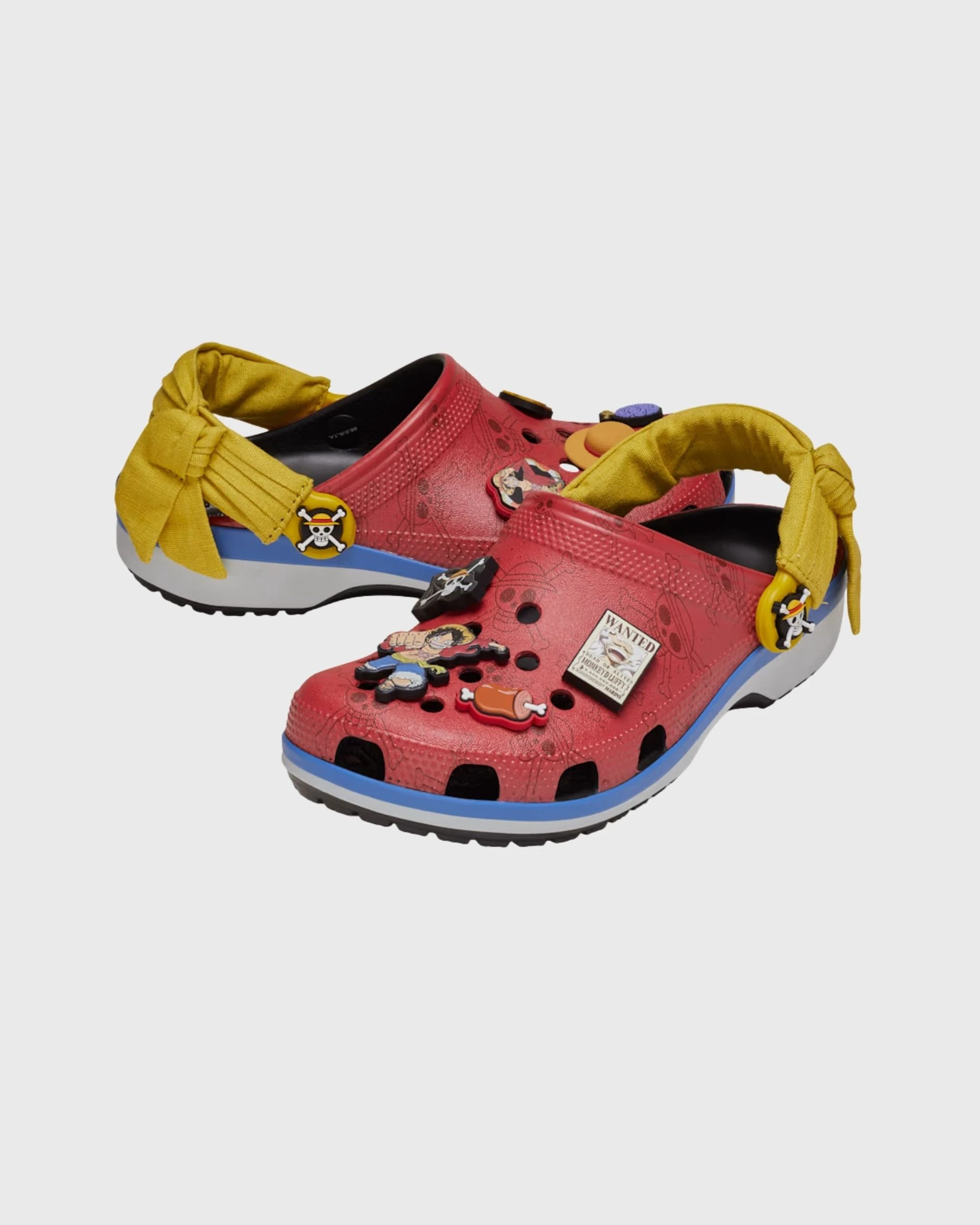 La partie supérieure intègre huit Jibbitz™ personnalisés, inspirés de l’univers de Luffy : pièces d’or, chapeau de paille ou encore avis de recherche.