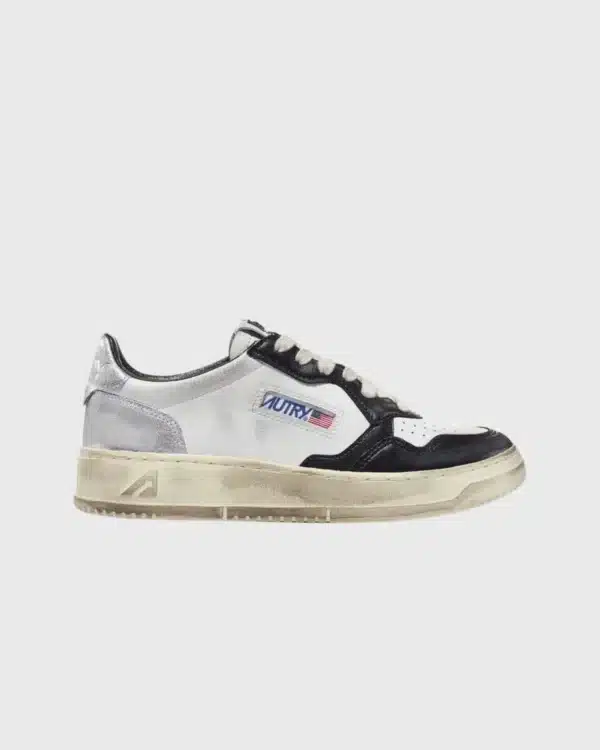 AUTRY – Basket Medalist Low Super Vintage Cuir Blanc Noir Et Argent